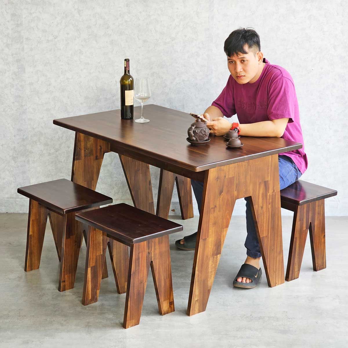 Khung chân bàn được làm từ gỗ tràm dày 25mm, cắt tạo hình chữ A vững chắc, đảm bảo độ bền đẹp theo thời gian