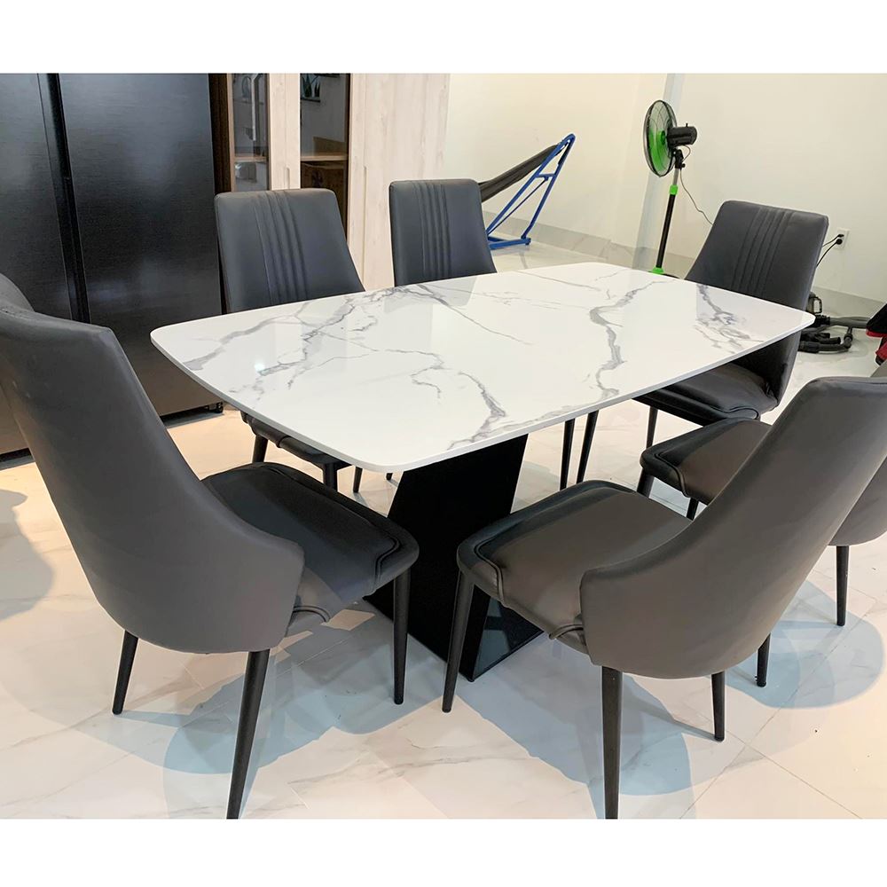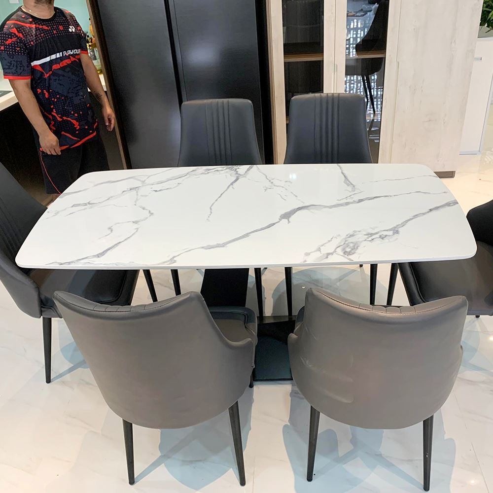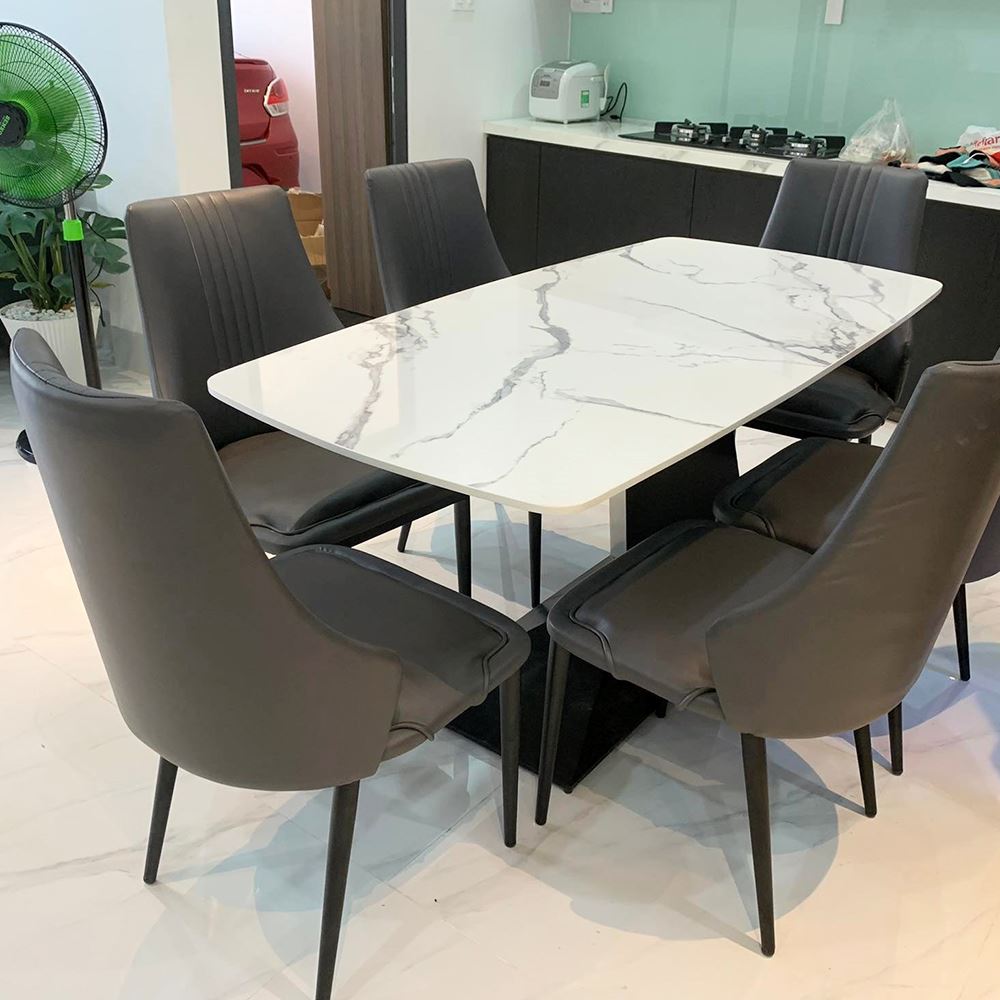 Bàn ăn 160x80cm mặt đá chân sắt BA68096 toát lên vẻ đẹp hiện đại, mặt bàn đá trắng vân mây sang trọng kết hợp khung chân sắt có thiết kế độc đáo chắc chắn sẽ là điểm nhấn cho không gian giúp nâng tầm thẩm mỹ phòng ăn của bạn. Bên cạnh đó khung chân sắt sơn phủ lớp sơn tĩnh điện được gia công với độ hoàn thiện cao, chân sắt không lộ mối hàn, đảm bảo độ bền. Kích thước mặt bàn 160x80cm phù hợp từ 6-8 người sử dụng.