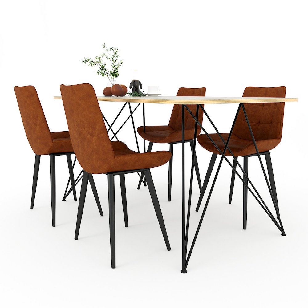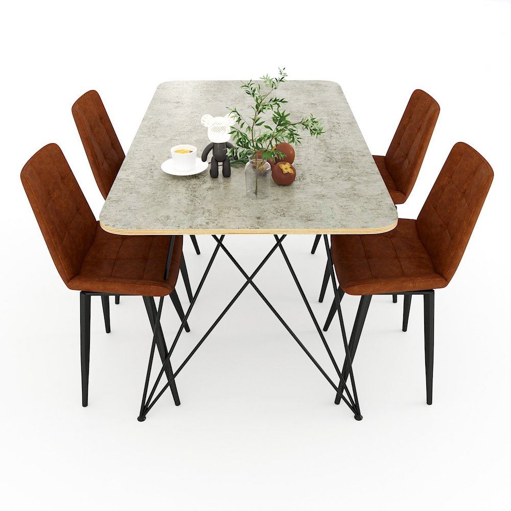 Bàn ăn ARES 02 gỗ Plywood màu bê tông chân sắt sơn tĩnh điện
