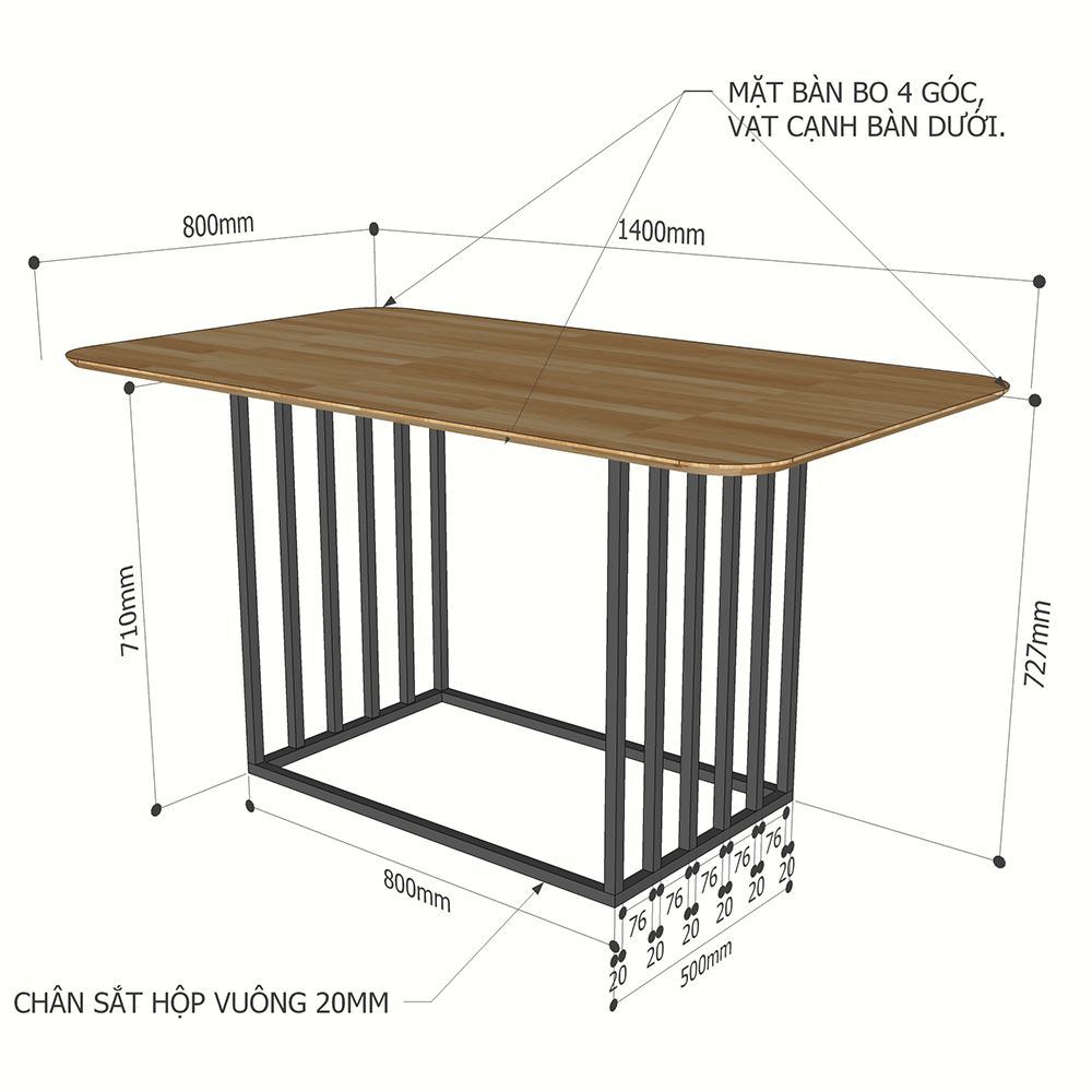 Bàn ăn Gemma BA68063 nổi bật với khung chân được làm từ sắt vuông 20mm thanh mảnh toát lên vẻ tinh tế, trang nhã. Mặt bàn gỗ cao su được xử lý chống thấm nước rất dễ dàng vệ sinh mà không sợ bong tróc, bên cạnh đó mặt bàn có thể sơn PU 5 màu khác nhau giúp bạn có thể lựa chọn phù hợp với không gian nhà bếp theo sở thích bản thân. Bàn ăn hiện có 2 kích thước 140x80cm và 160x80cm tuỳ chọn theo diện tích không gian nhà bếp.