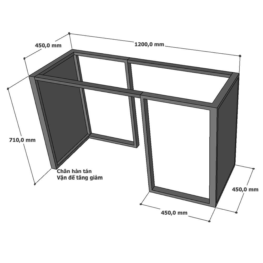 - Chất liệu: Gỗ cao su tiêu chuẩn AA dày 17mm. Sắt hộp 20x40mm dày 1.2mm