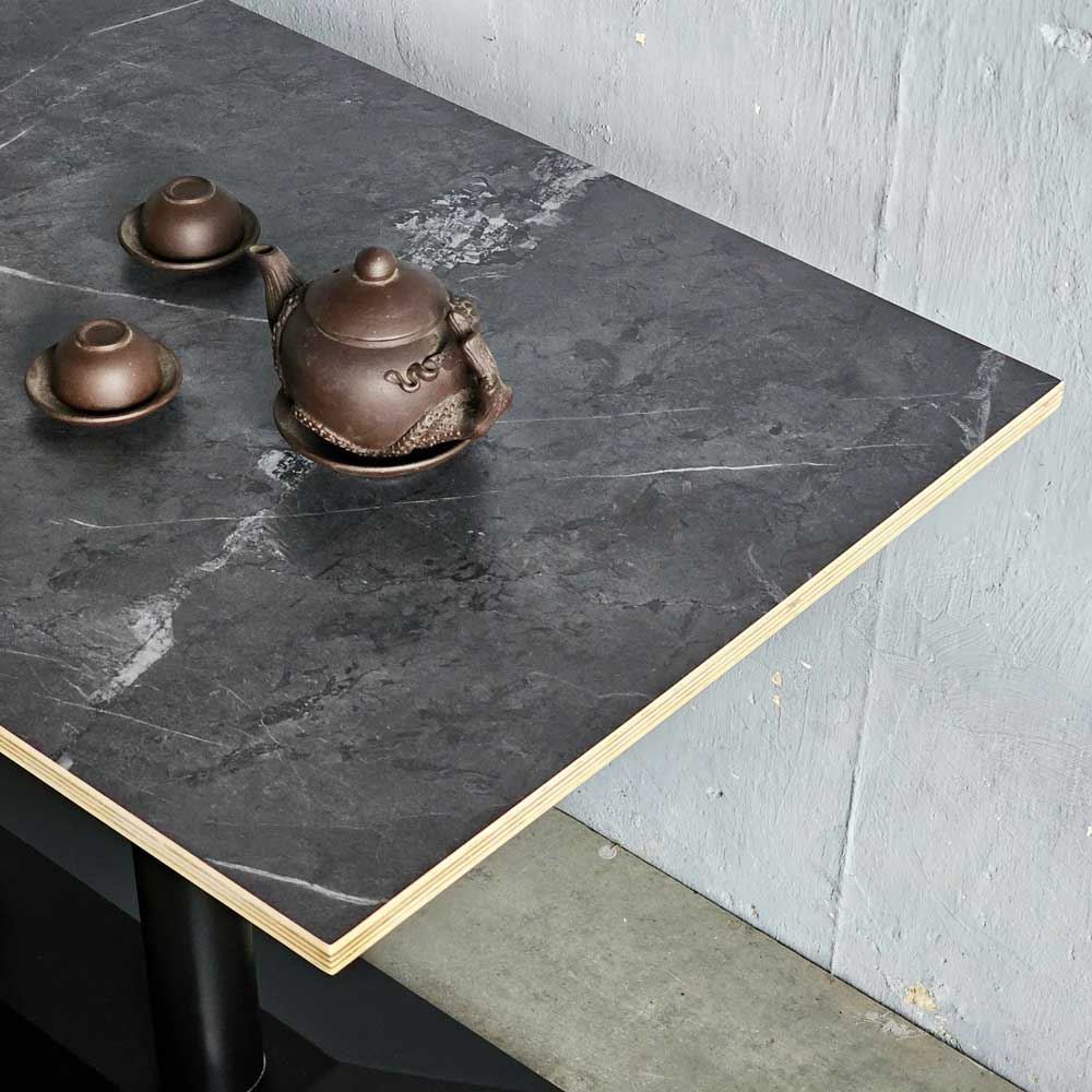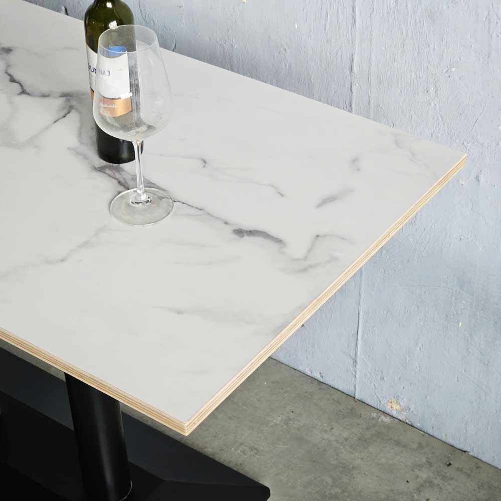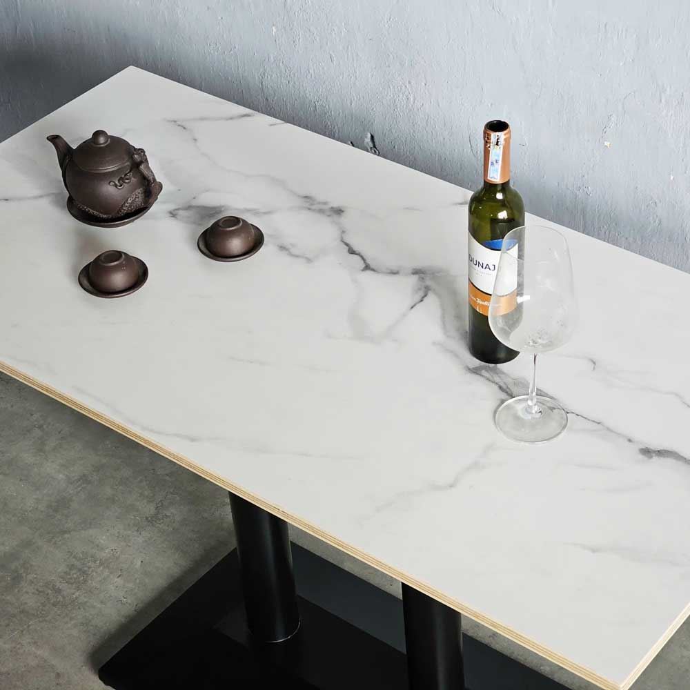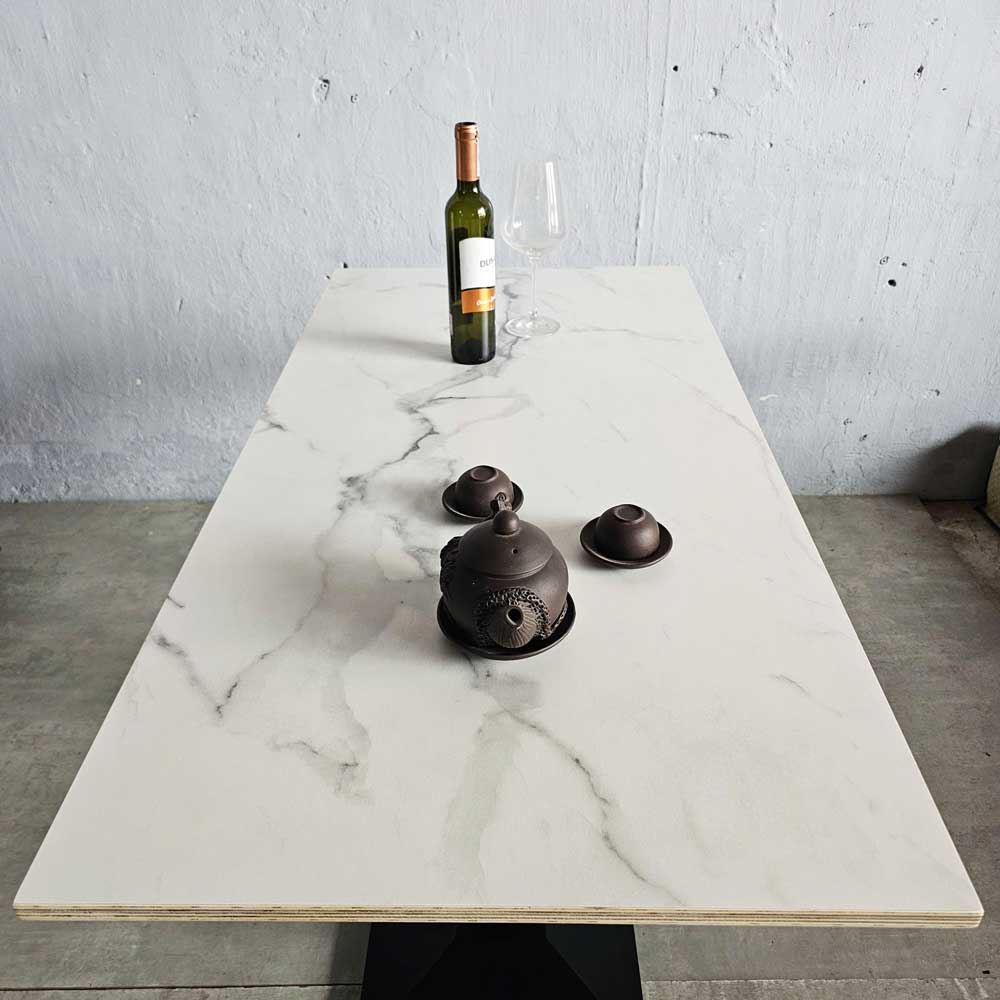 Mặt bàn melamin vân đá không chỉ tạo nên vẻ đẹp độc đáo mà còn đảm bảo độ bền cao, chống thấm, chống trầy xước