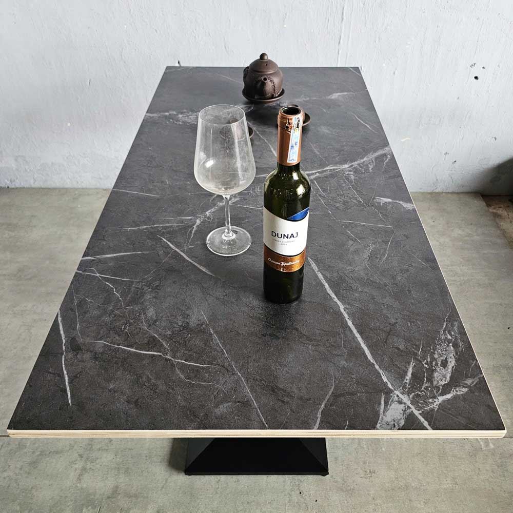 Bàn ăn CFD68237 là sự kết hợp hoàn hảo giữa vẻ đẹp sang trọng của đá marble và sự mạnh mẽ, hiện đại của kim loại. Mặt bàn được làm từ gỗ plywood phủ melamin vân đá Marble (trắng) hoặc Veneto (đen), mang đến một vẻ đẹp tự nhiên và sang trọng. Mặt bàn đã được xử lý chống thấm, giúp bảo vệ bề mặt khỏi các vết bẩn và trầy xước.