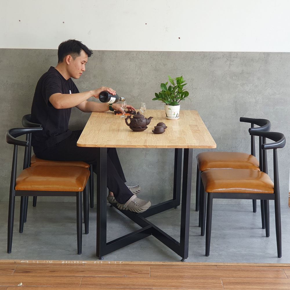 Bàn ăn mặt gỗ cao su chân sắt sơn tĩnh điện BA68158 với kiểu dáng hiện đại, độc đáo nhưng không kém phần sang trọng phù hợp với không gian nhà bếp nhà ở, chung cư, căn hộ hay cũng có thể là bàn chung sử dụng tại các văn phòng công ty. Mặt bàn gỗ cao su AA, tiêu chuẩn xuất khẩu, được khai thác từ loại cây công nghiệp lâu năm, với vân gỗ đẹp mắt không có mấu mắt. Bề mặt được xử lý PU chống thấm nước giúp bạn dễ dàng vệ sinh.