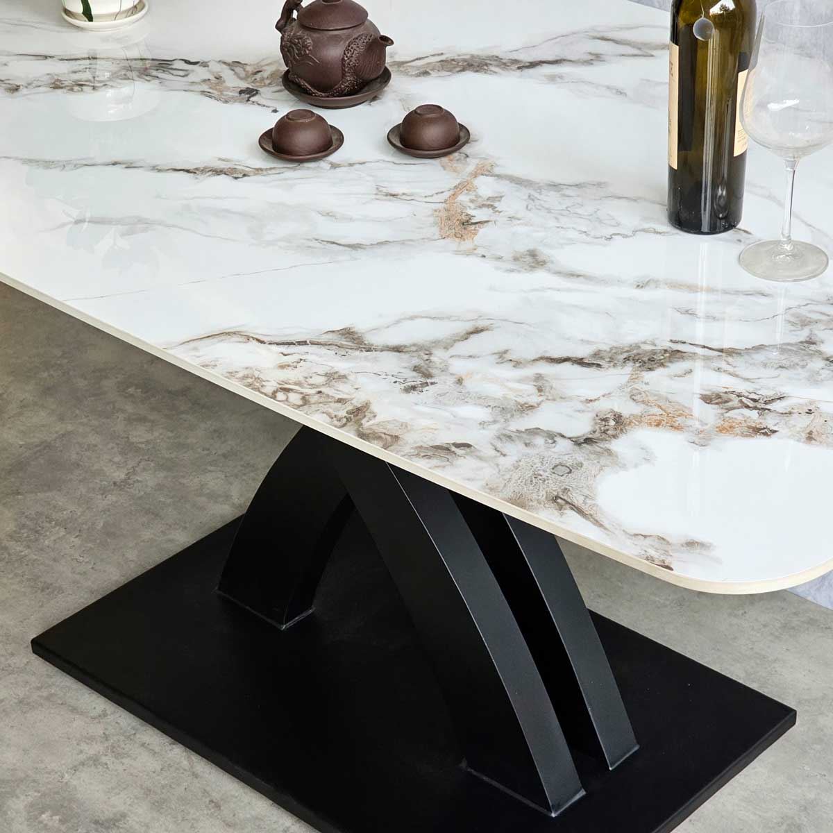 Bàn ăn chữ nhật BA68179 có mặt bàn được làm bằng đá ceramic, là một loại vật liệu cao cấp được sản xuất bằng cách chế tạo từ đất sét hoặc các nguyên liệu khoáng chất khác, sau đó đốt nung ở nhiệt độ cao để tạo ra một vật liệu cứng và không thấm nước. Đá ceramic có nhiều đặc điểm thuận lợi, bao gồm độ bền cao, khả năng chịu nhiệt tốt, kháng hóa chất, không bị ảnh hưởng bởi ánh sáng mặt trời hoặc màu sắc, và dễ dàng làm sạch. Nó cũng có thể có nhiều màu sắc, hoa văn và kích thước khác nhau, cho phép nó được sử dụng trong nhiều ứng dụng khác nhau.