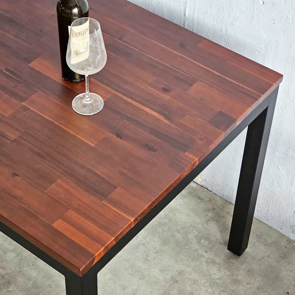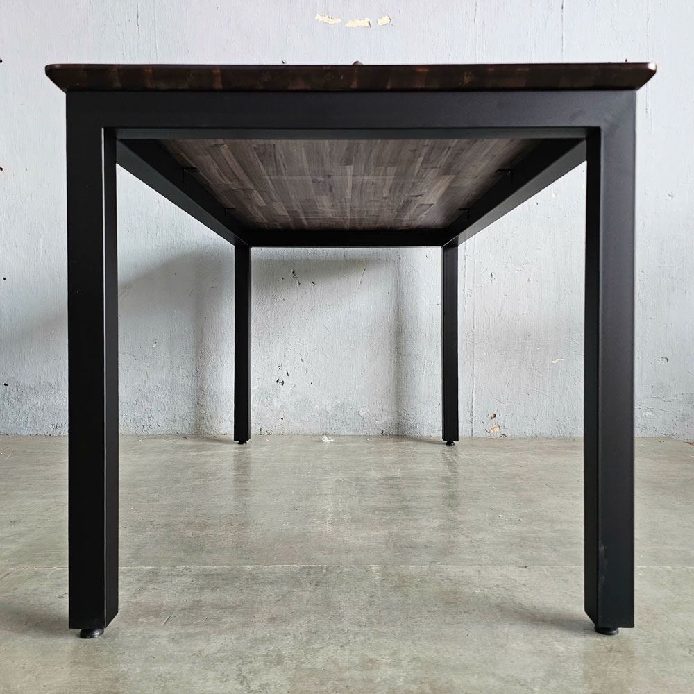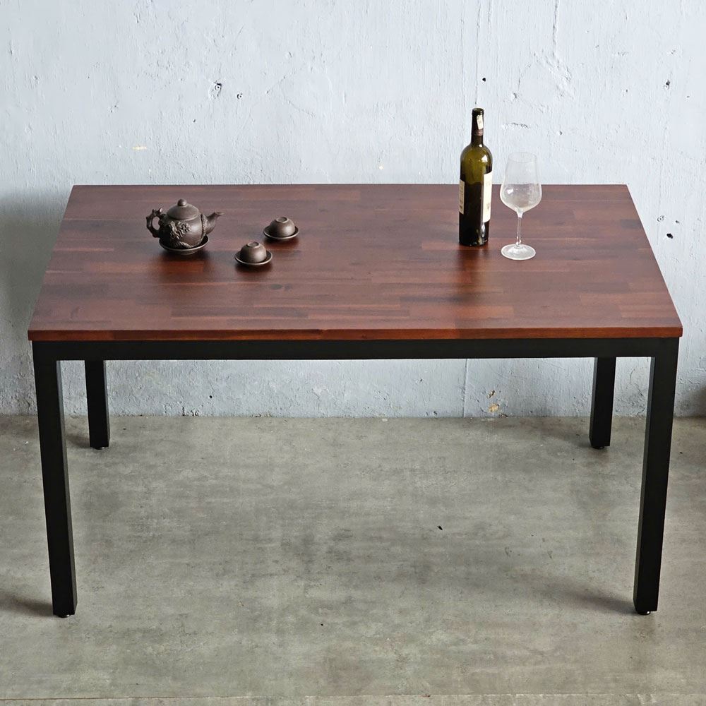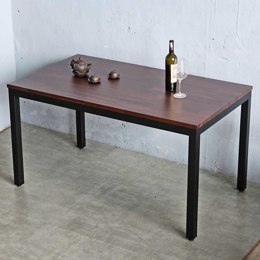 Bề mặt gỗ được HomeOffice chà nhám mịn màng và phủ một lớp sơn PU chống thấm nước, không chỉ bảo vệ gỗ khỏi tác động của môi trường mà còn tạo nên một bề mặt sáng bóng, dễ dàng vệ sinh. Bạn có thể thoải mái thưởng thức những bữa ăn ngon mà không lo về vết bẩn. Khung chân sắt hộp cứng cáp, dày 1.2mm, được sơn tĩnh điện, vừa đảm bảo tính thẩm mỹ vừa tăng cường khả năng chịu lực. Thiết kế chân bàn đơn giản, tinh tế, tạo nên sự cân bằng hài hòa với mặt bàn gỗ.