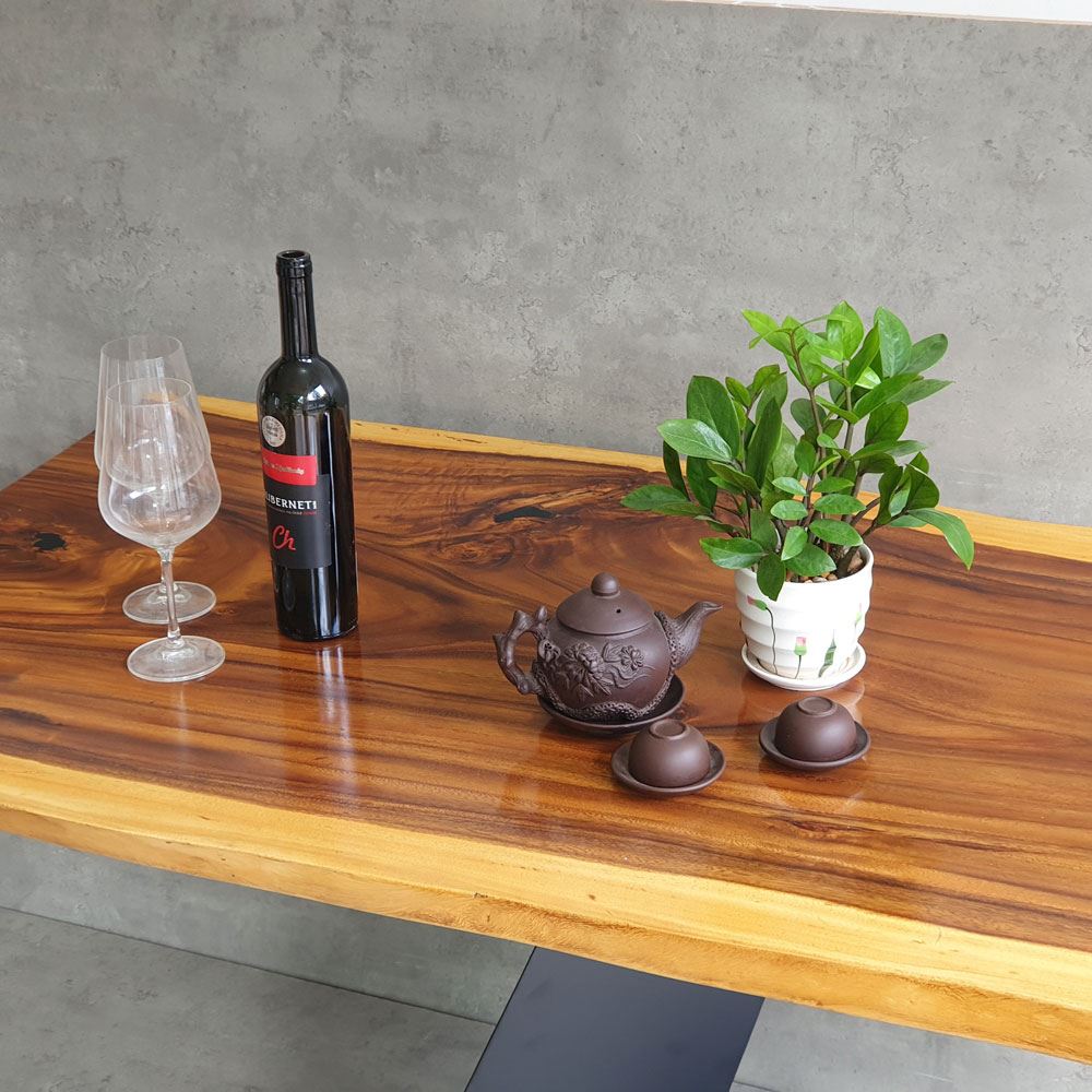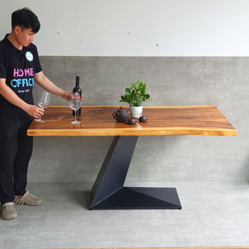 Bàn ăn gỗ me tây nguyên tấm 160x80cm BA68160 với mặt bàn được làm từ gỗ nguyên tấm, không ghép hay chắp vá, có độ dày 4cm được sấy và xử lý bề mặt PU kỹ càng, mặt bàn được xử lý chuyên nghiệp giúp giữ nguyên được màu sắc và vân gỗ một cách tự nhiên mang vẻ đẹp mộc mạc từ chất gỗ tự nhiên. Kết hợp với chân sắt chữ X kiểu được thiết kế mới lạ, hút mắt người nhìn, bên cạnh đó khung chân sắt sơn phủ lớp sơn tĩnh điện được gia công với độ hoàn thiện cao, chân sắt không lộ mối hàn, đảm bảo độ bền. Bàn gỗ me tây BA68160 sẽ là điểm nhấn tuyệt vời cho không gian nhà bếp, quán cafe hay bàn văn phòng nhờ kiểu dáng sang trọng, mang tính thẩm mỹ cao.