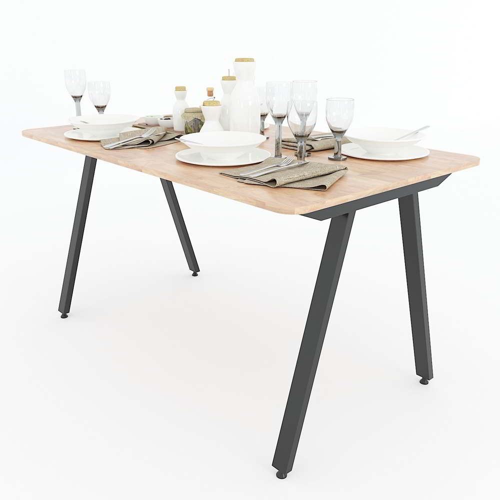 Bàn ăn hiện đại gỗ cao su chân sắt lắp ráp phù hợp với nhà ăn hiện đại ngày nay