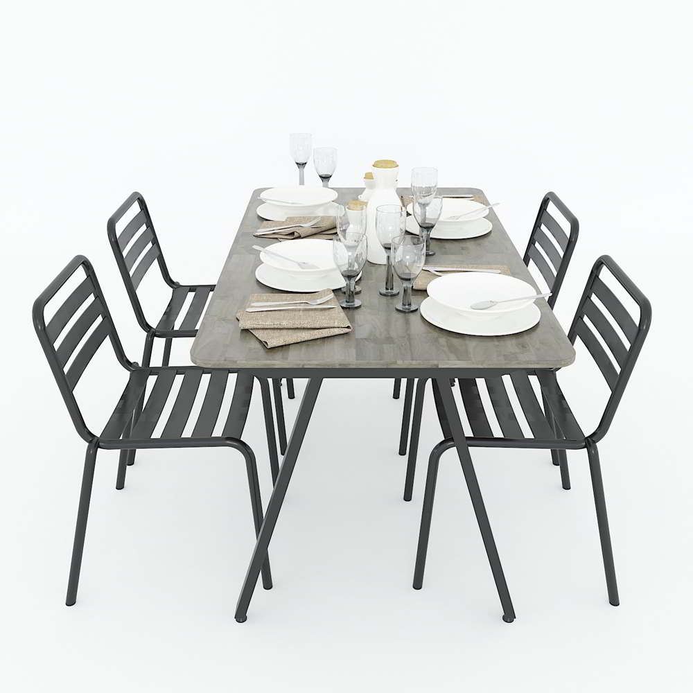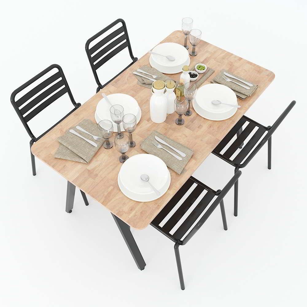 Kích thước chi tiết bàn ăn gỗ cao su chân sắt lắp ráp BA68034