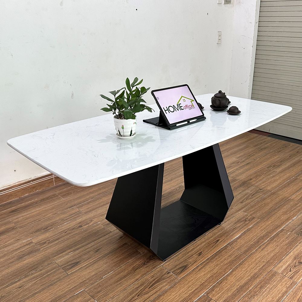 Bàn ăn mặt đá chân sắt sơn tĩnh điện BA68116 với điểm nhấn là chân sắt tròn được thiết kế mới lạ, hút mắt người nhìn, bên cạnh đó khung chân sắt sơn phủ lớp sơn tĩnh điện được gia công với độ hoàn thiện cao, chân sắt không lộ mối hàn, đảm bảo độ bền. Mặt bàn được làm từ mặt đá trắng cao cấp vừa có tính thẩm mỹ vừa chịu lực tốt, hạn chế tối đa vết trầy xước, các góc bàn được bo cạnh tròn mềm mại, an toàn cho người sử dụng.