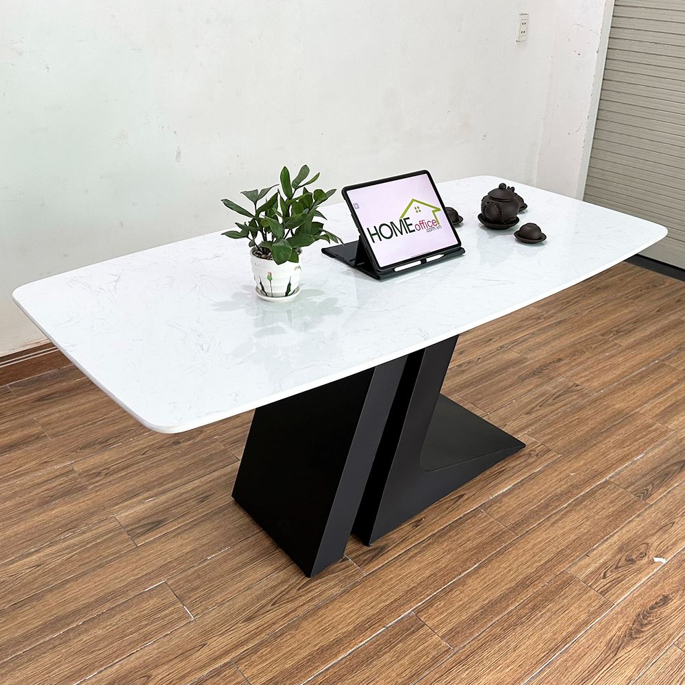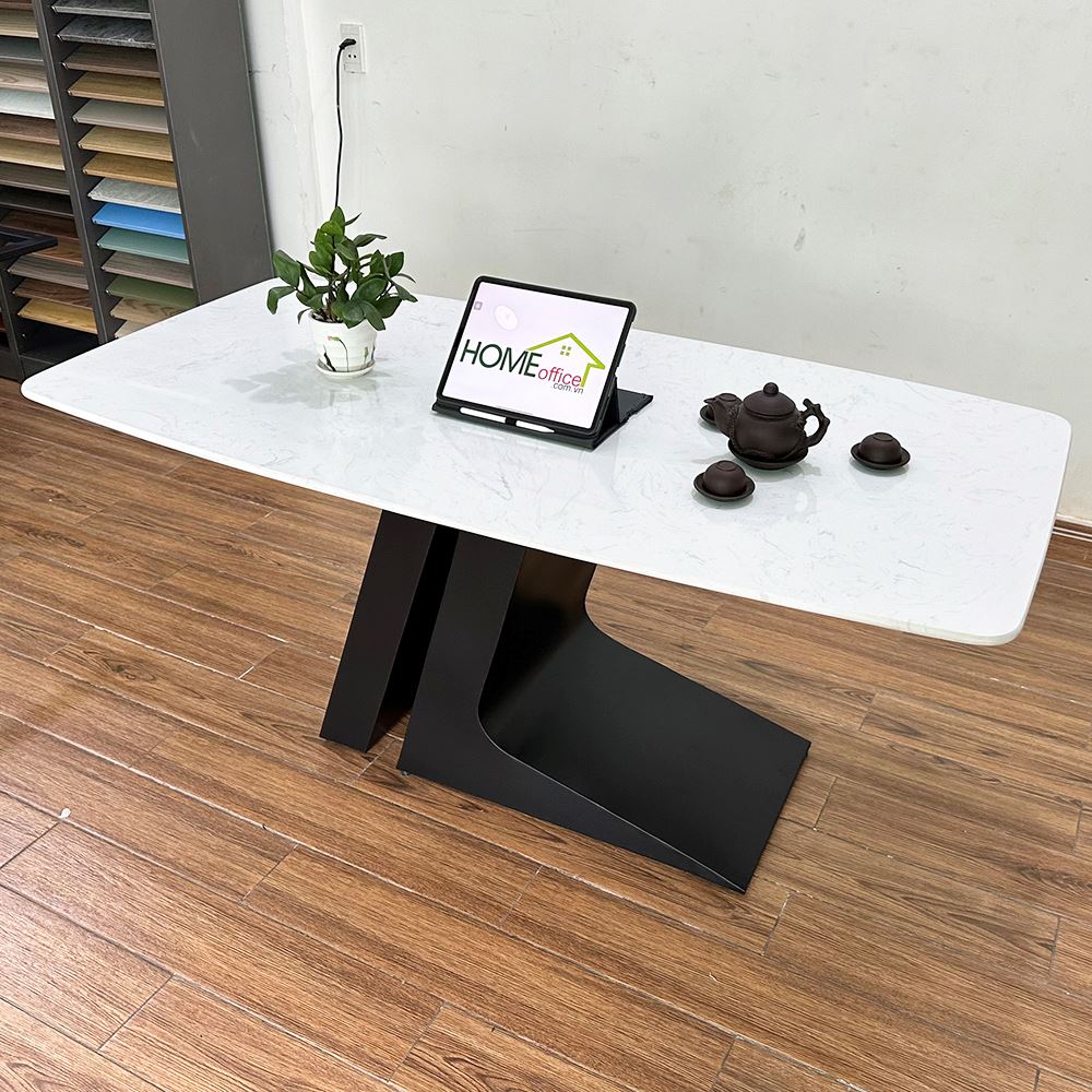 Bàn ăn mặt đá chân sắt sơn tĩnh điện BA68118 với điểm nhấn là chân sắt tròn được thiết kế mới lạ, hút mắt người nhìn, bên cạnh đó khung chân sắt sơn phủ lớp sơn tĩnh điện được gia công với độ hoàn thiện cao, chân sắt không lộ mối hàn, đảm bảo độ bền. Mặt bàn được làm từ mặt đá trắng cao cấp vừa có tính thẩm mỹ vừa chịu lực tốt, hạn chế tối đa vết trầy xước, các góc bàn được bo cạnh tròn mềm mại, an toàn cho người sử dụng.