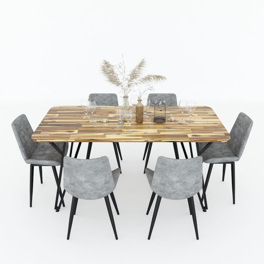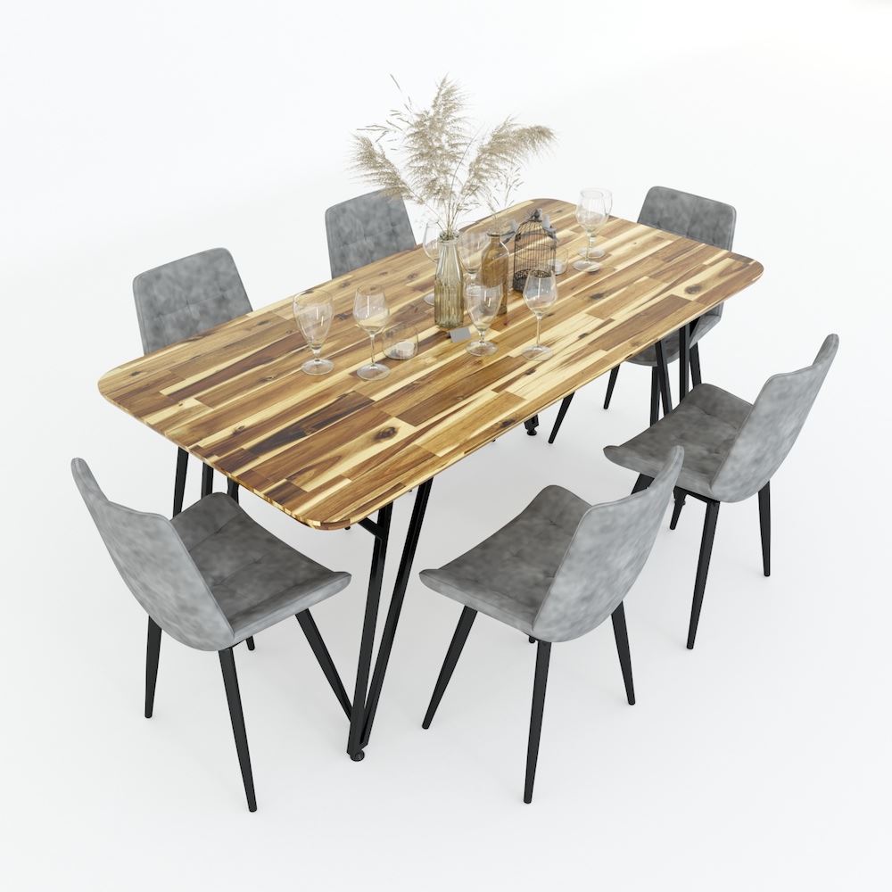 Bàn ăn MIKA mặt gỗ tràm chân sắt chữ Y