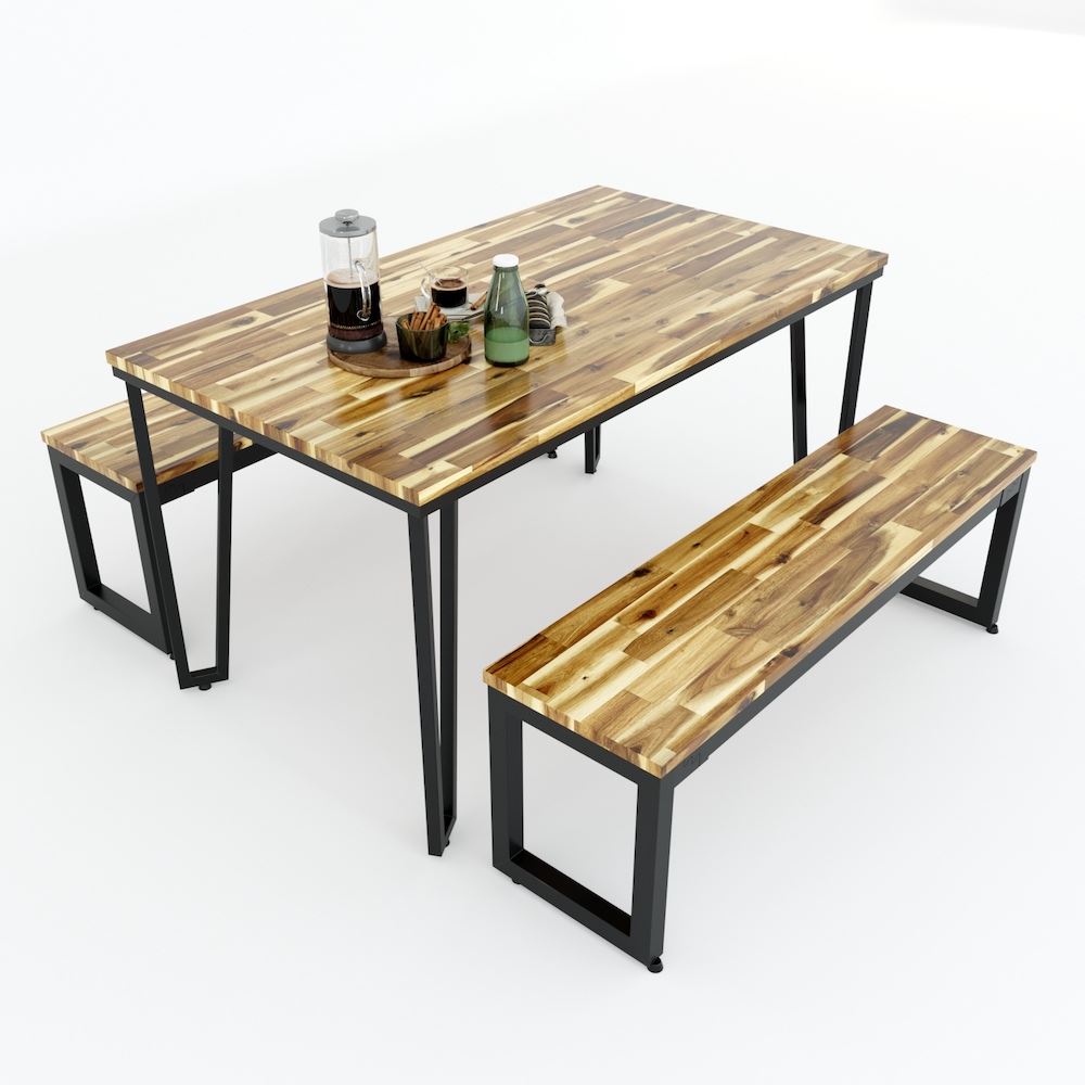 Bộ bàn ăn và 2 ghế băng gỗ tràm