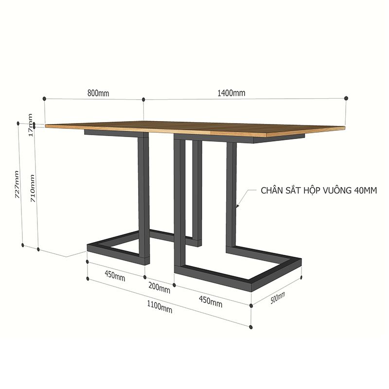 - Chất liệu: Gỗ cao su tiêu chuẩn Aa dày 17mm. Sắt vuông 40x40mm dày 1.2mm chắc chắc
