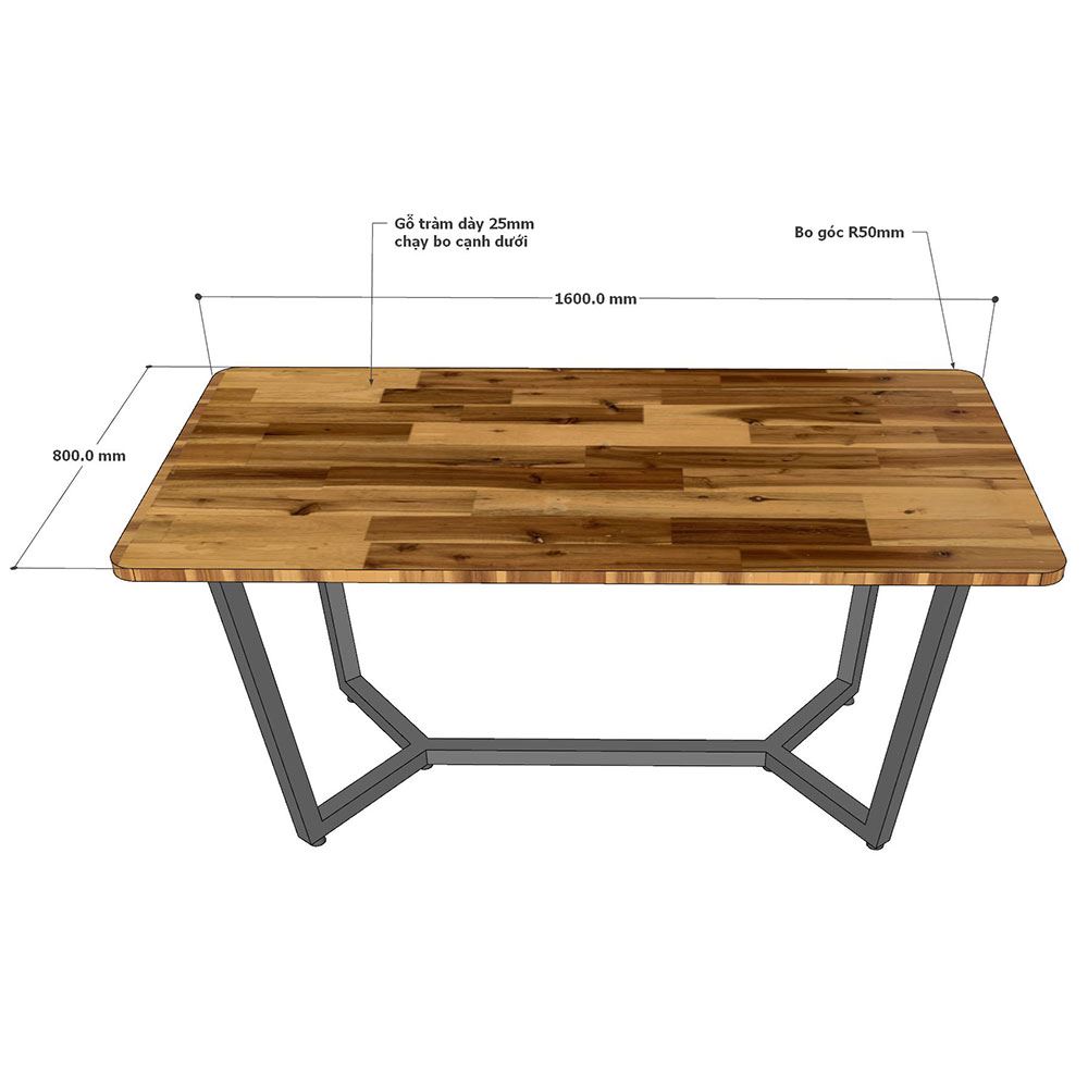 Bàn ăn TOGI gỗ Tràm chân sắt 160x80cm - BA68211 kiểu dáng đơn giản hình chữ nhật với mặt bàn bằng gỗ Tràm dày 25mm sơn PU hoàn thiện với 3 màu sắc mặt bàn lựa chọn, Khung chân sắt kiểu dáng hiện đại được hàn cố định và sơn tĩnh điện hoàn thiện.