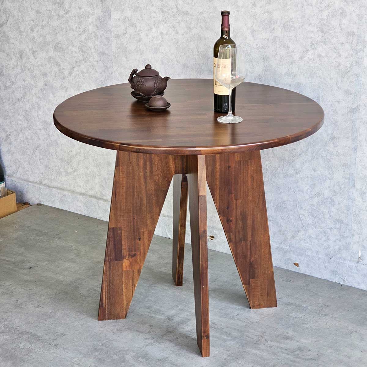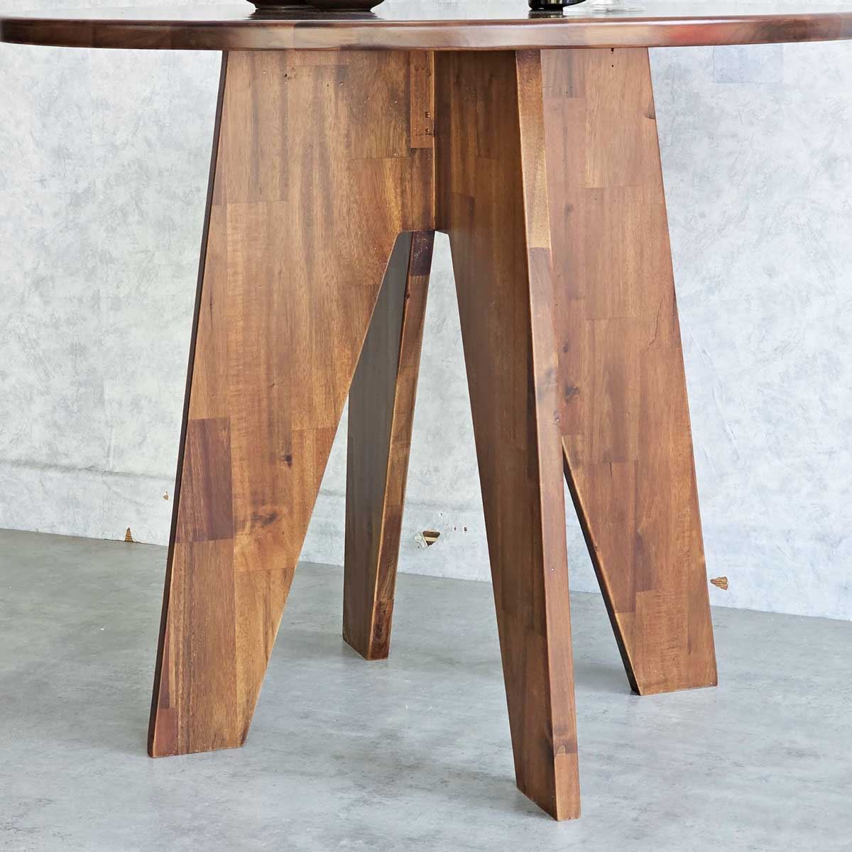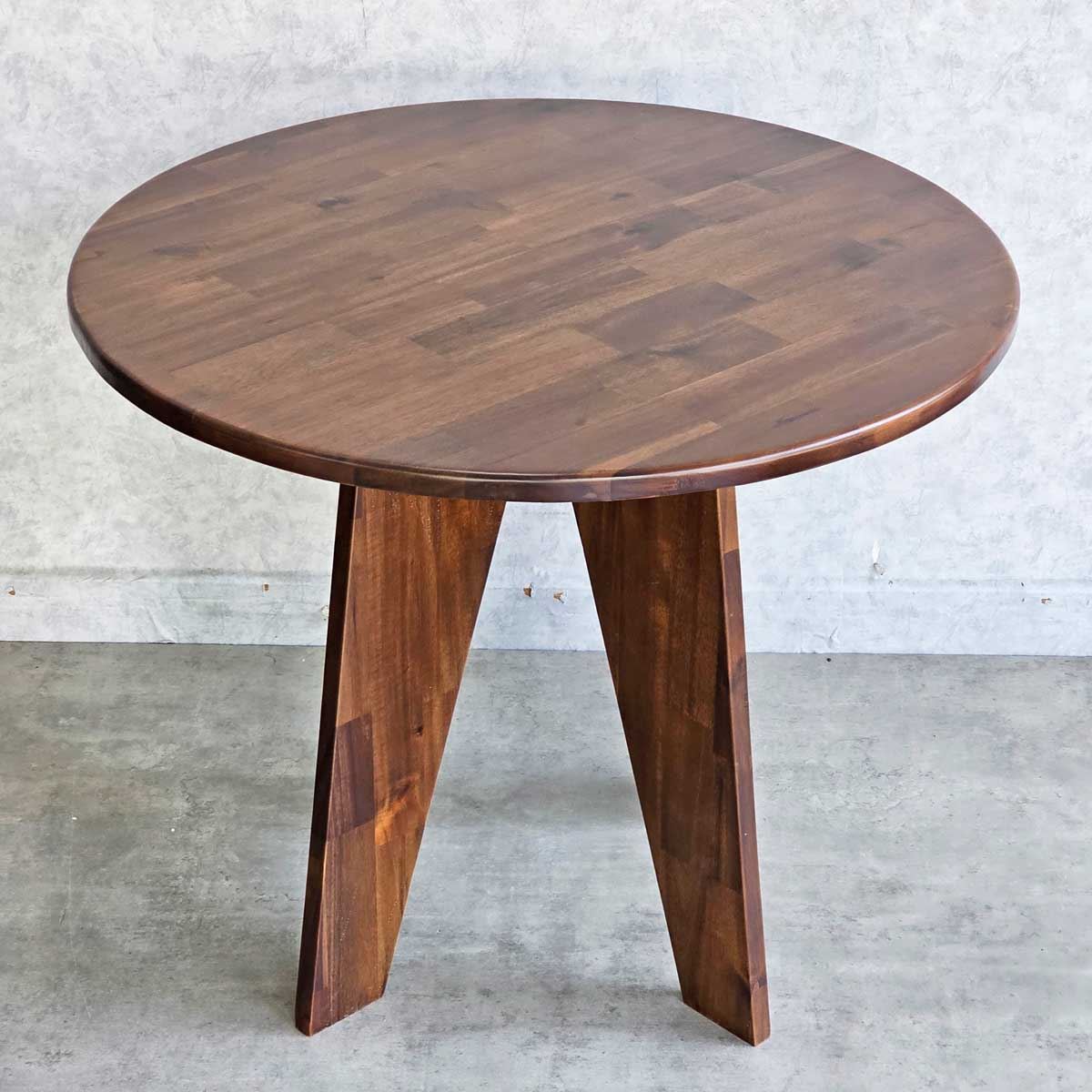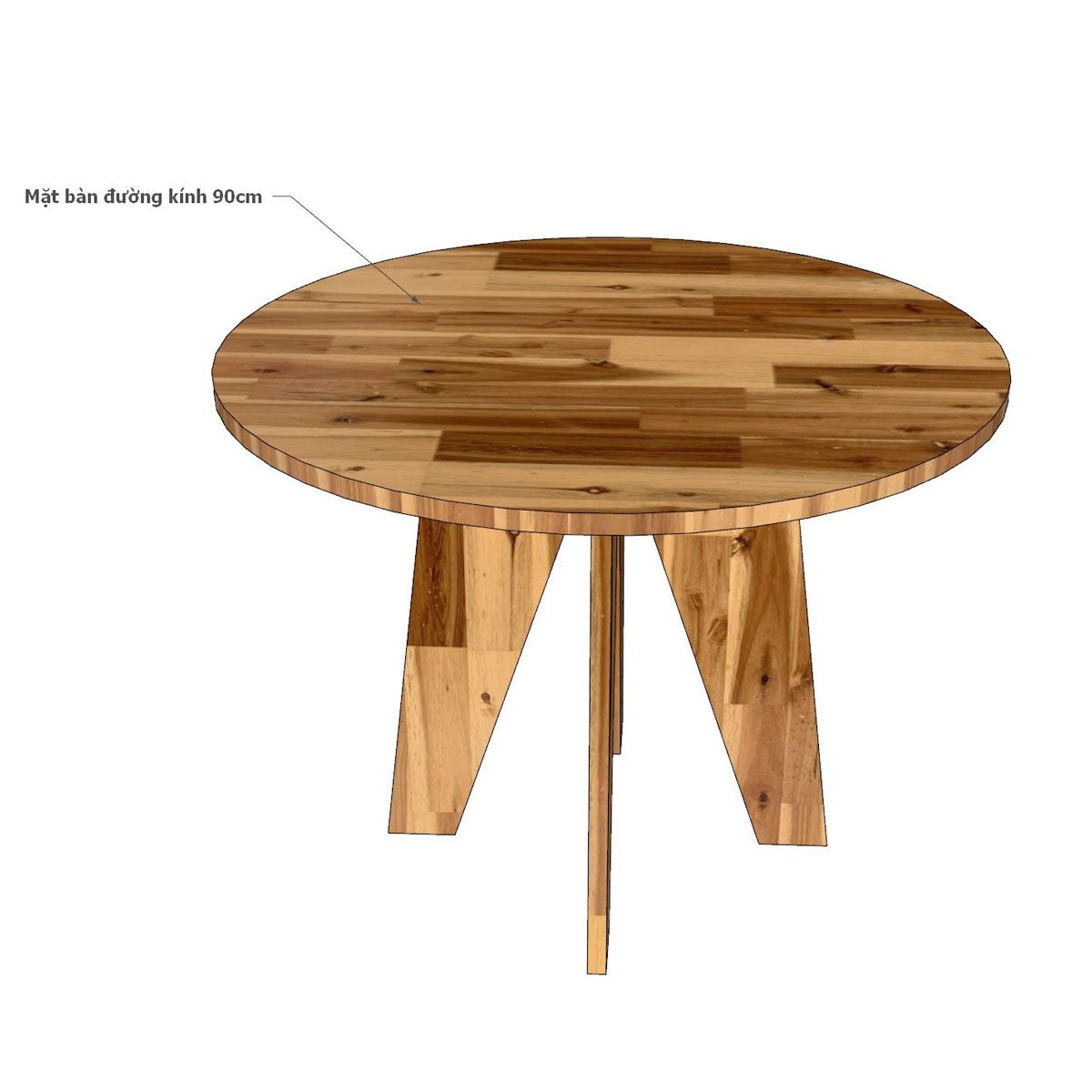 Mặt bàn tròn được mài cạnh mềm mại, kết hợp cùng chân gỗ chữ A tạo nên sự thanh thoát, nhẹ nhàng cho căn phòng
