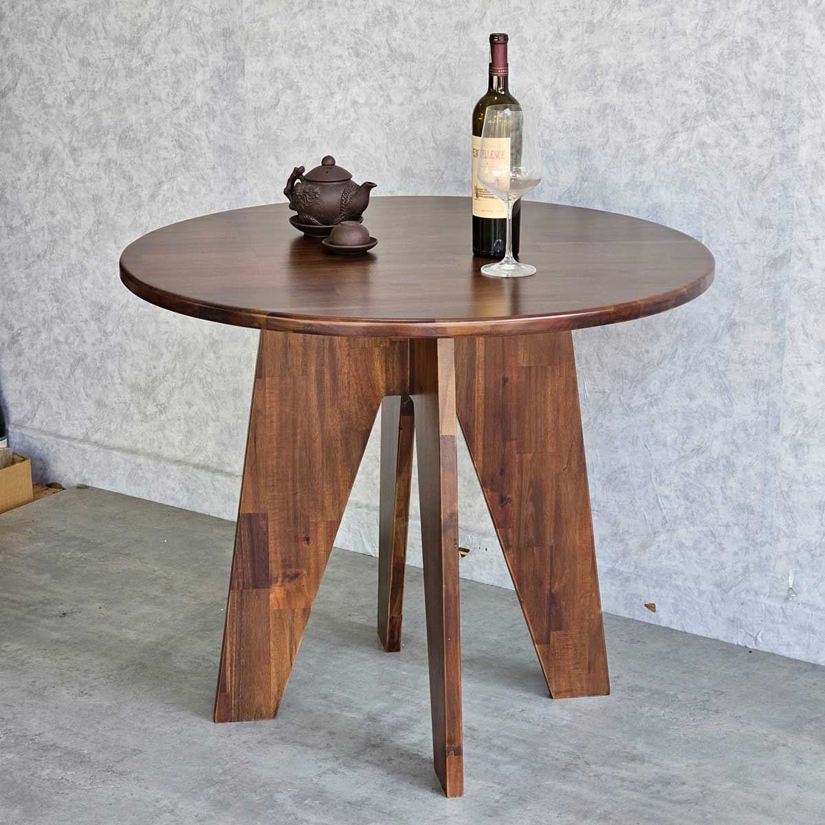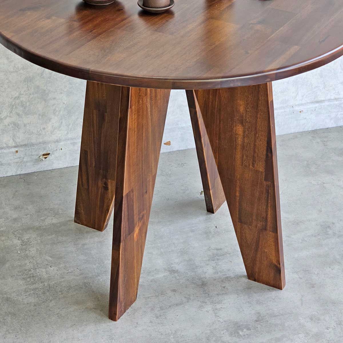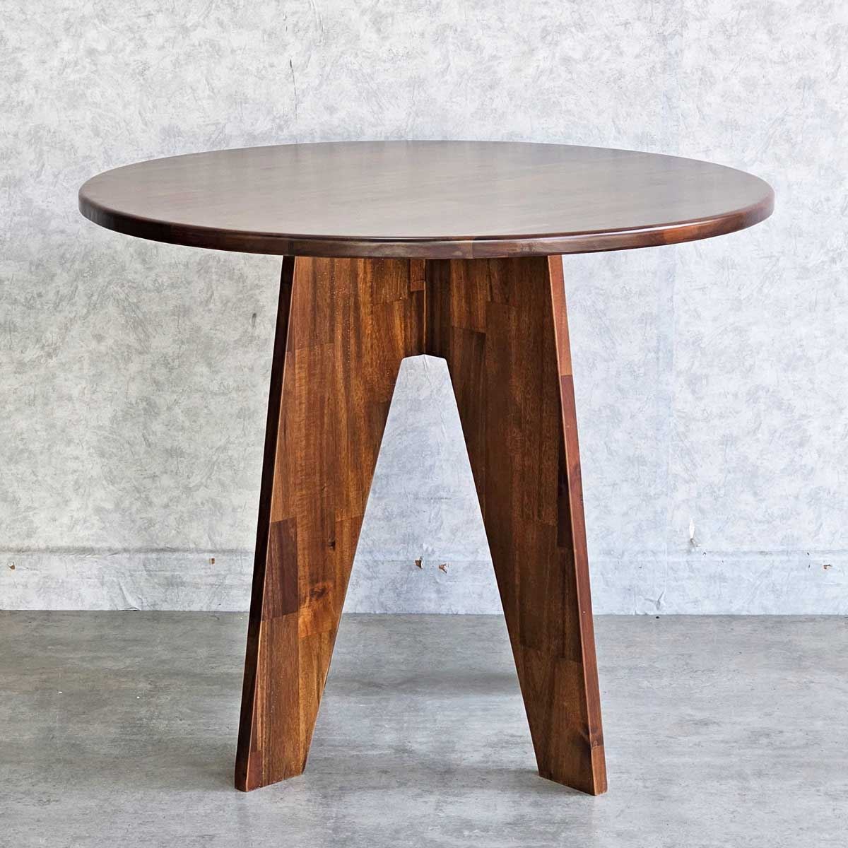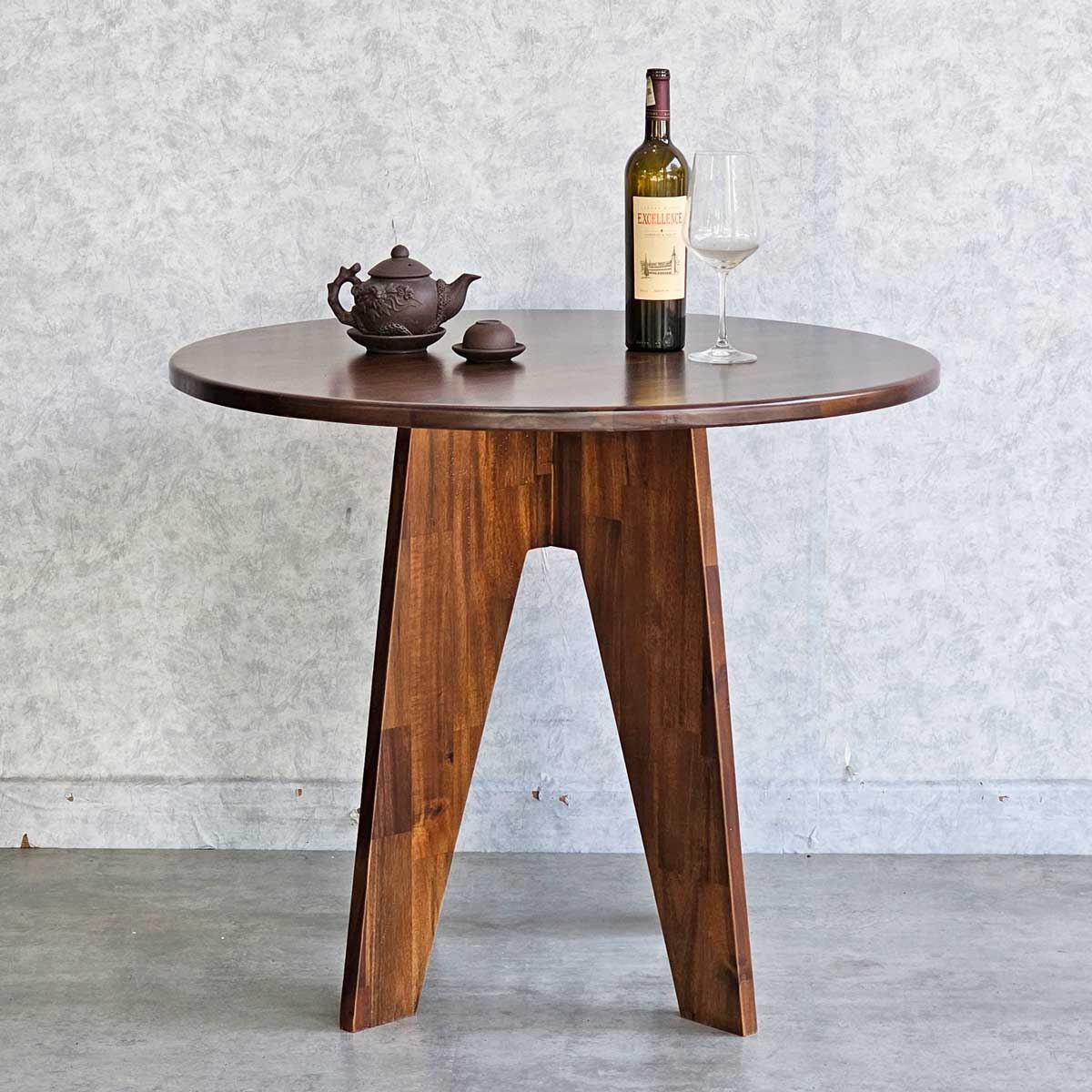 Mặt bàn tròn được mài cạnh mềm mại, kết hợp cùng chân gỗ chữ A tạo nên sự thanh thoát, nhẹ nhàng cho căn phòng