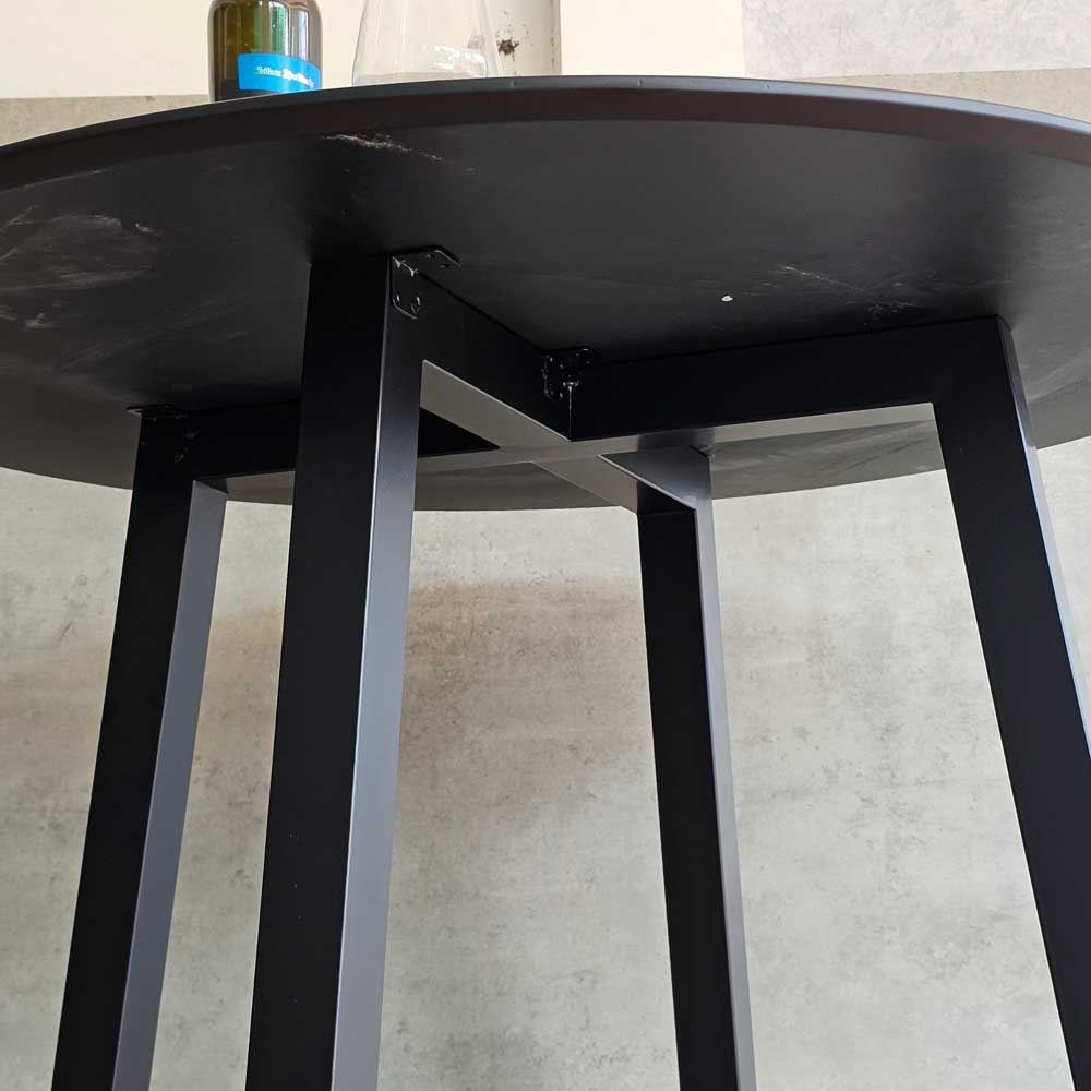 Mặt bàn được làm bằng chất liệu gỗ cao su AA, chuẩn xuất khẩu, đã xử lý chà nhám và phủ chống thấm nước. Khung chân sắt hộp 50x50mm, loại dày 1.2 ly rất cứng cáp, với khả năng chịu tải trọng tốt. Bề mặt khung sắt được phủ sơn tĩnh điện chống gỉ sét, và đảm bảo tính thẩm mỹ cao cho sản phẩm.