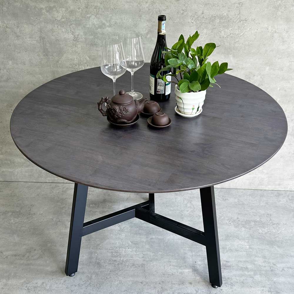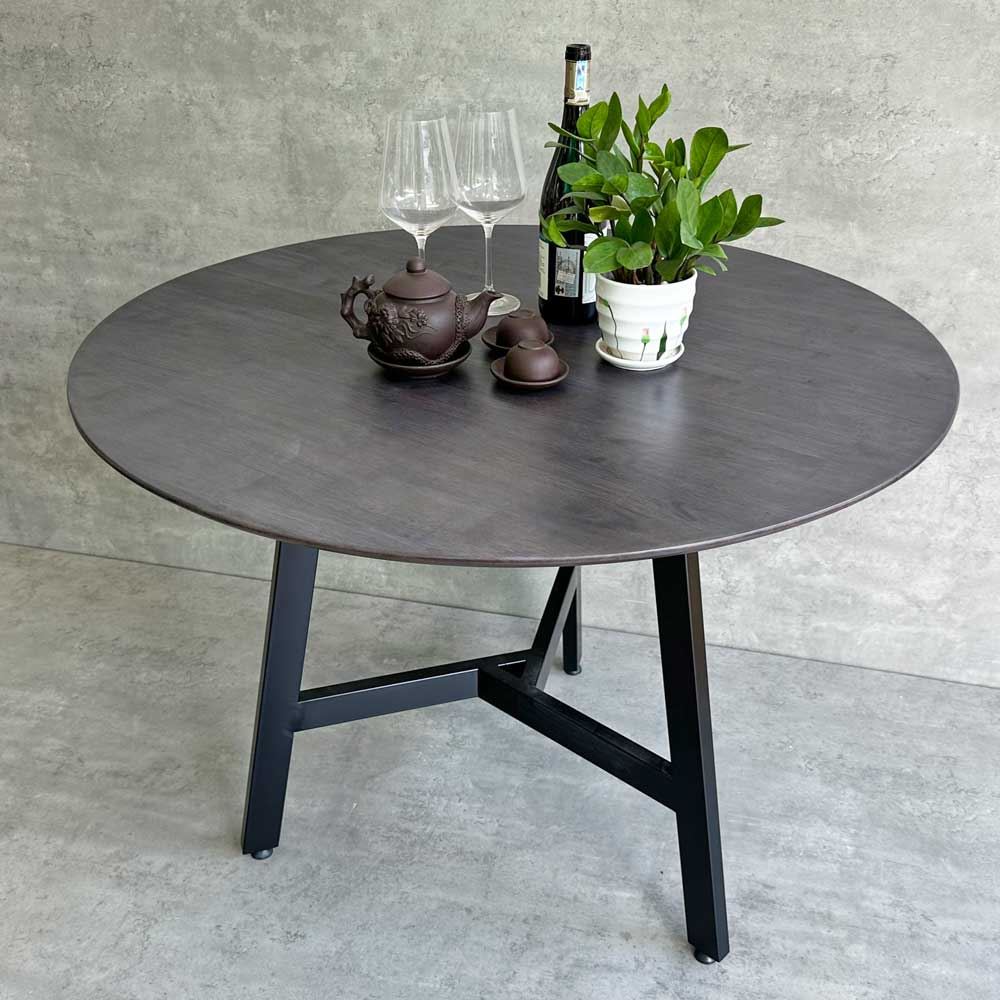 Bàn ăn tròn mặt gỗ màu nâu lau độc đáo chỉ có tại HomeOffice