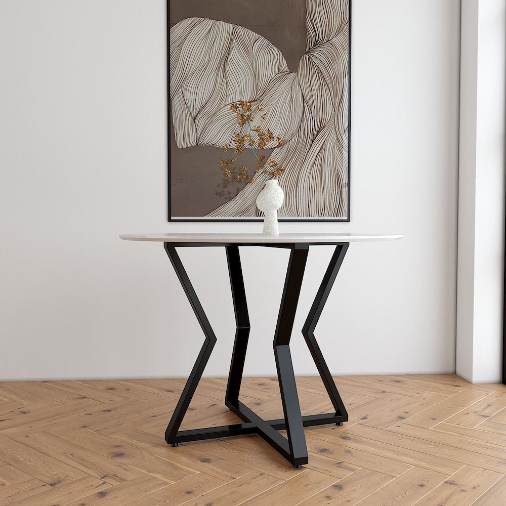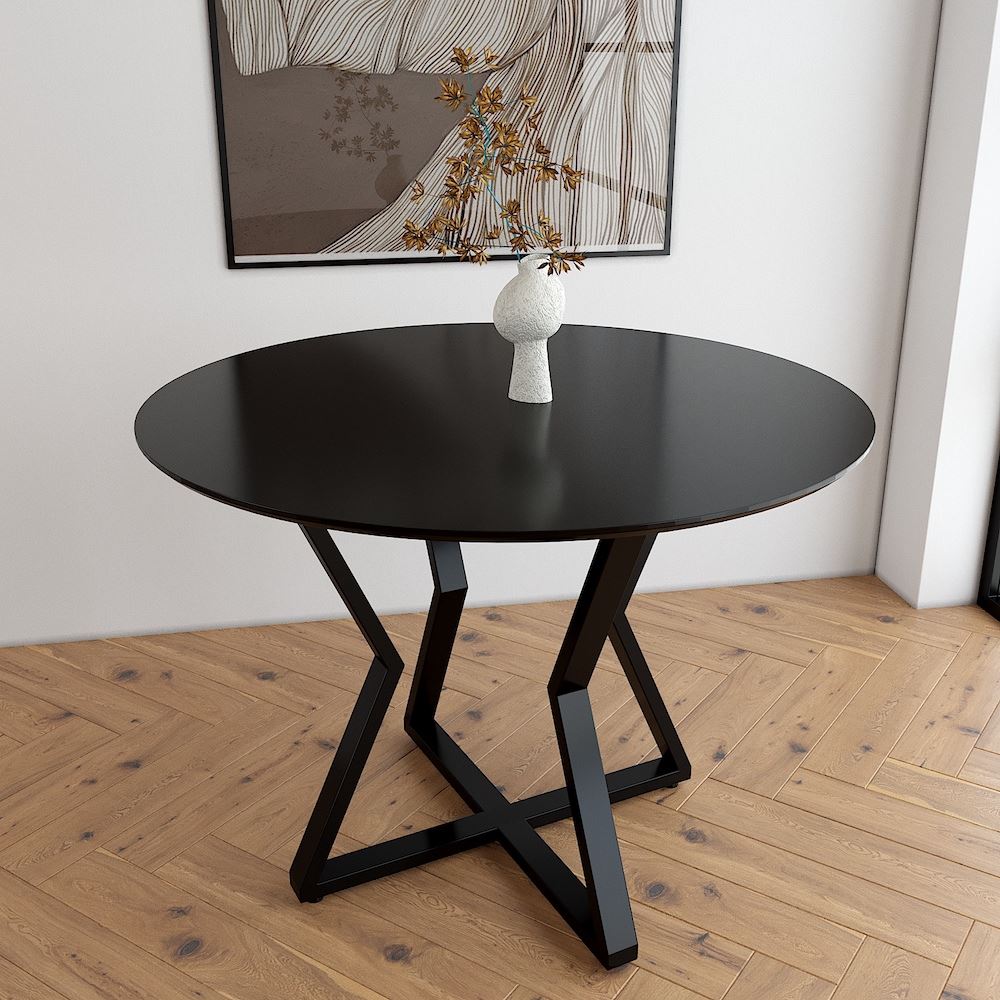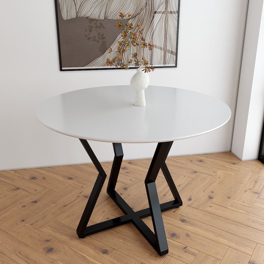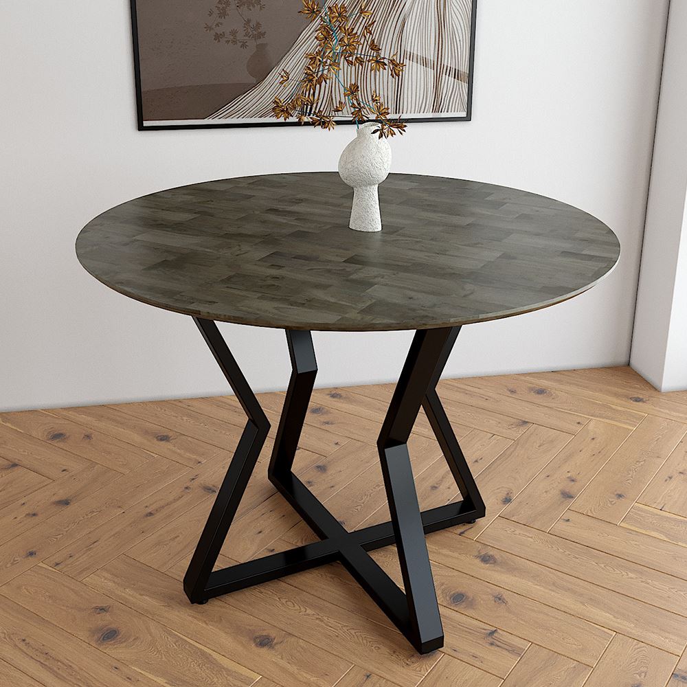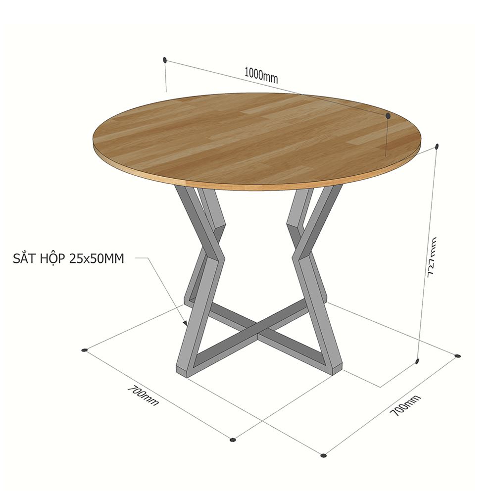 Bàn ăn tròn mặt gỗ chân sắt sơn tĩnh điện