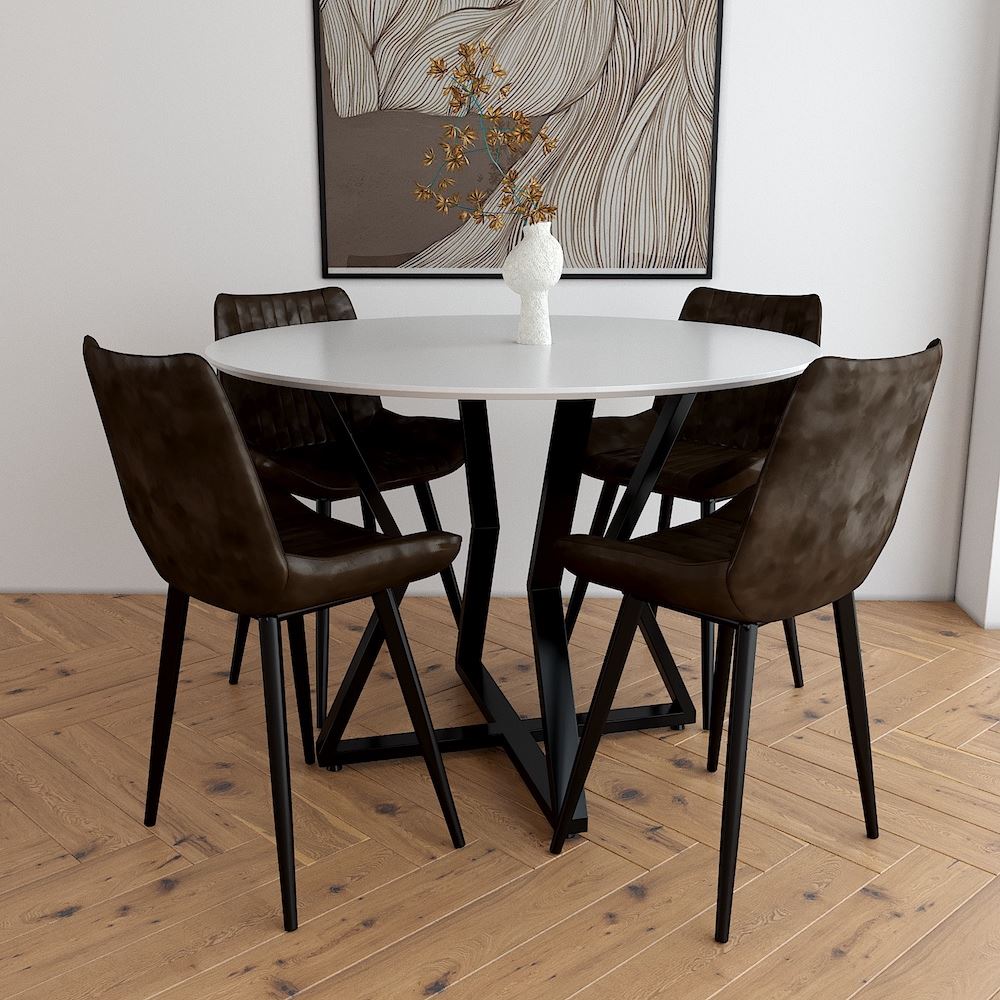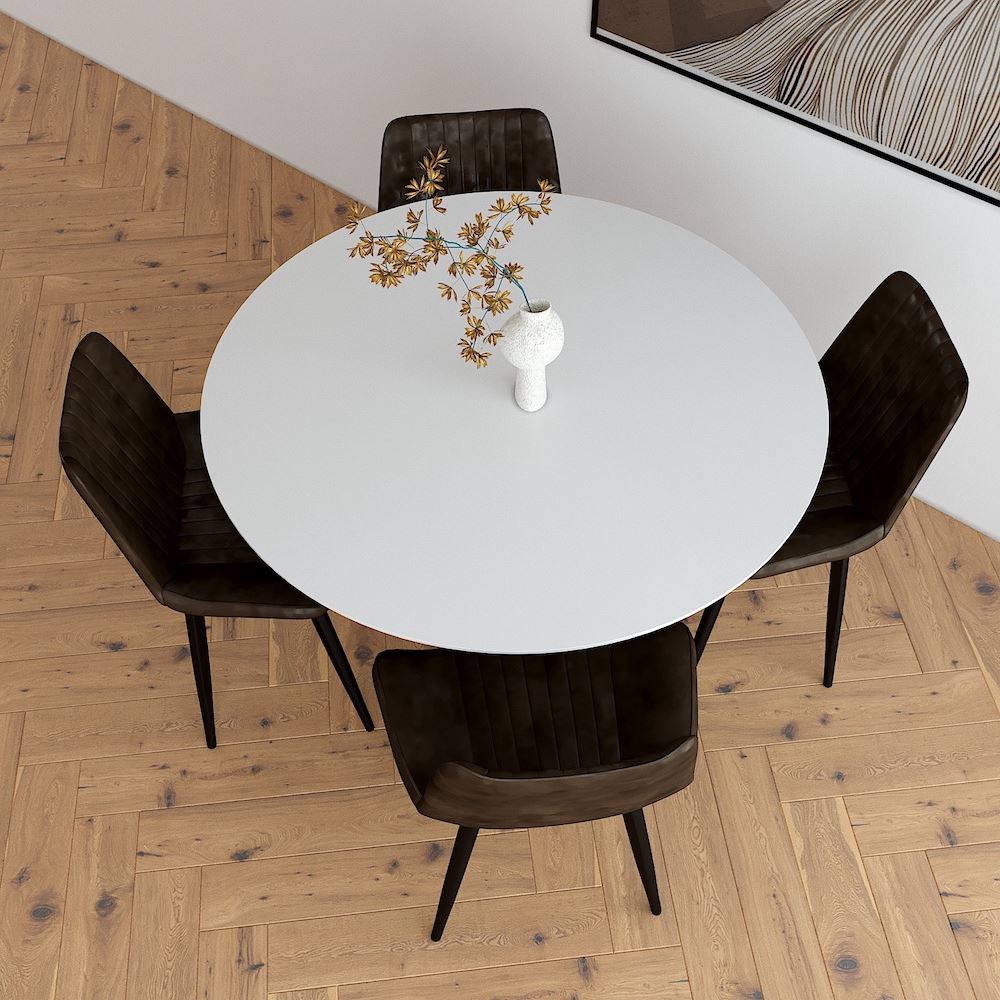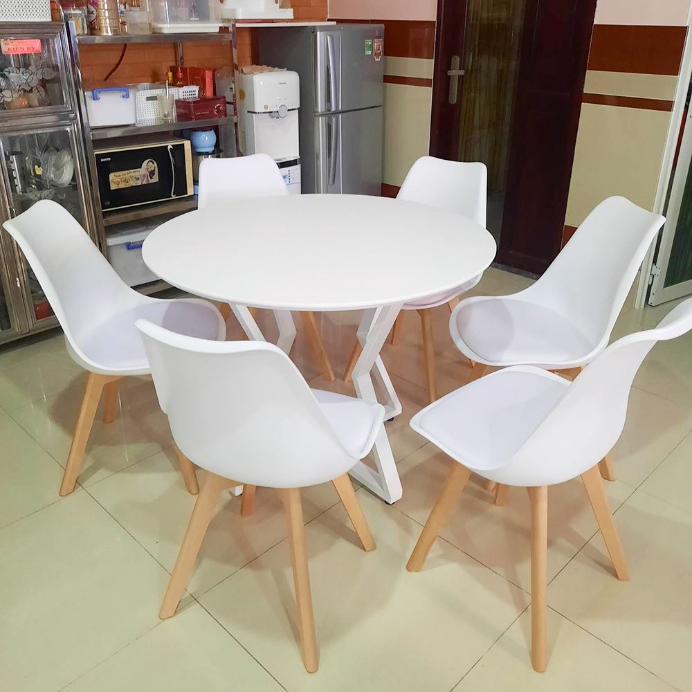 Bộ bàn ăn 4 người được kết hợp từ bàn ăn tròn và ghế nệm