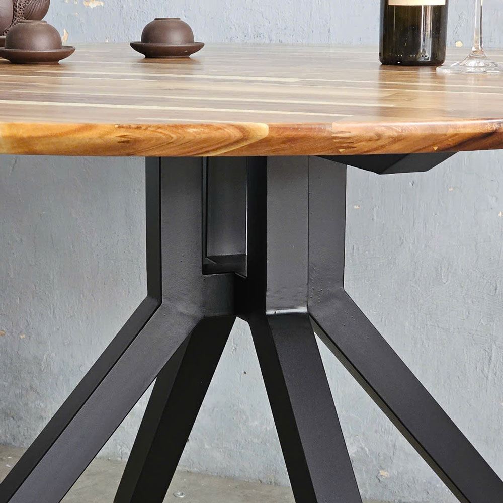 Bàn ăn tròn VEXA 120cm gỗ tràm chân sắt BA68230