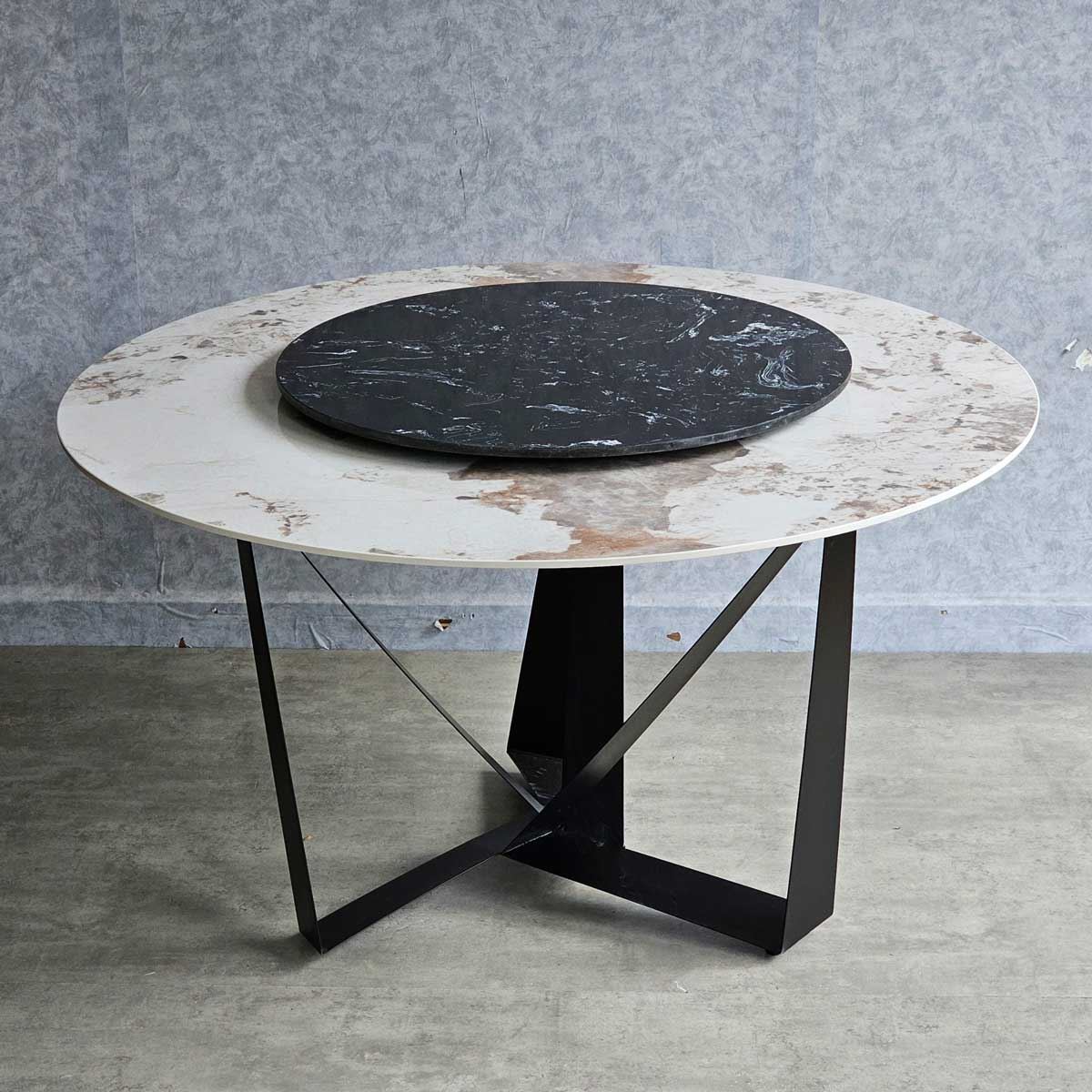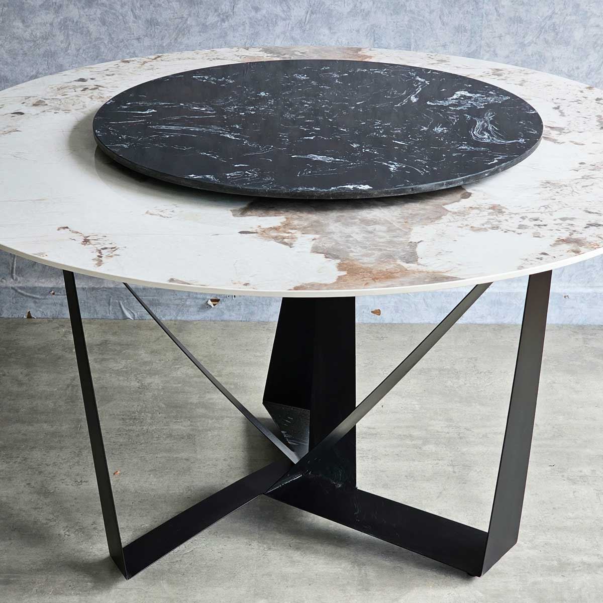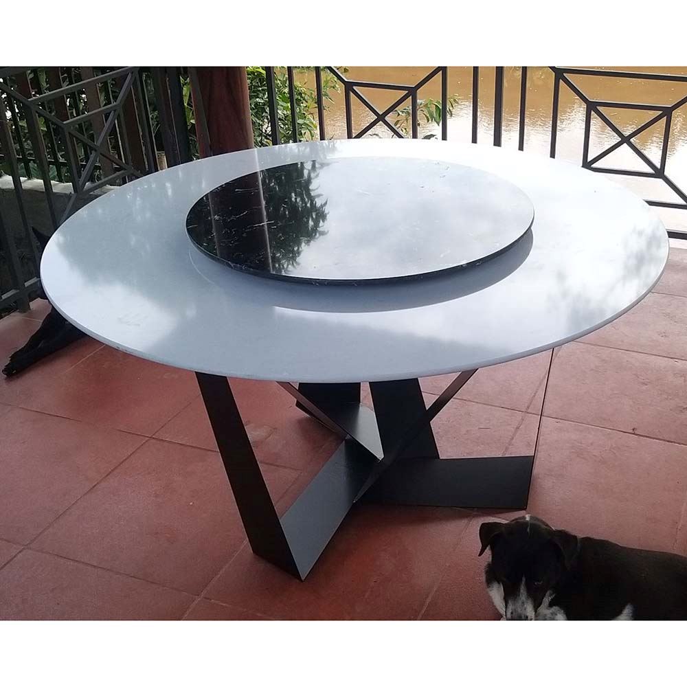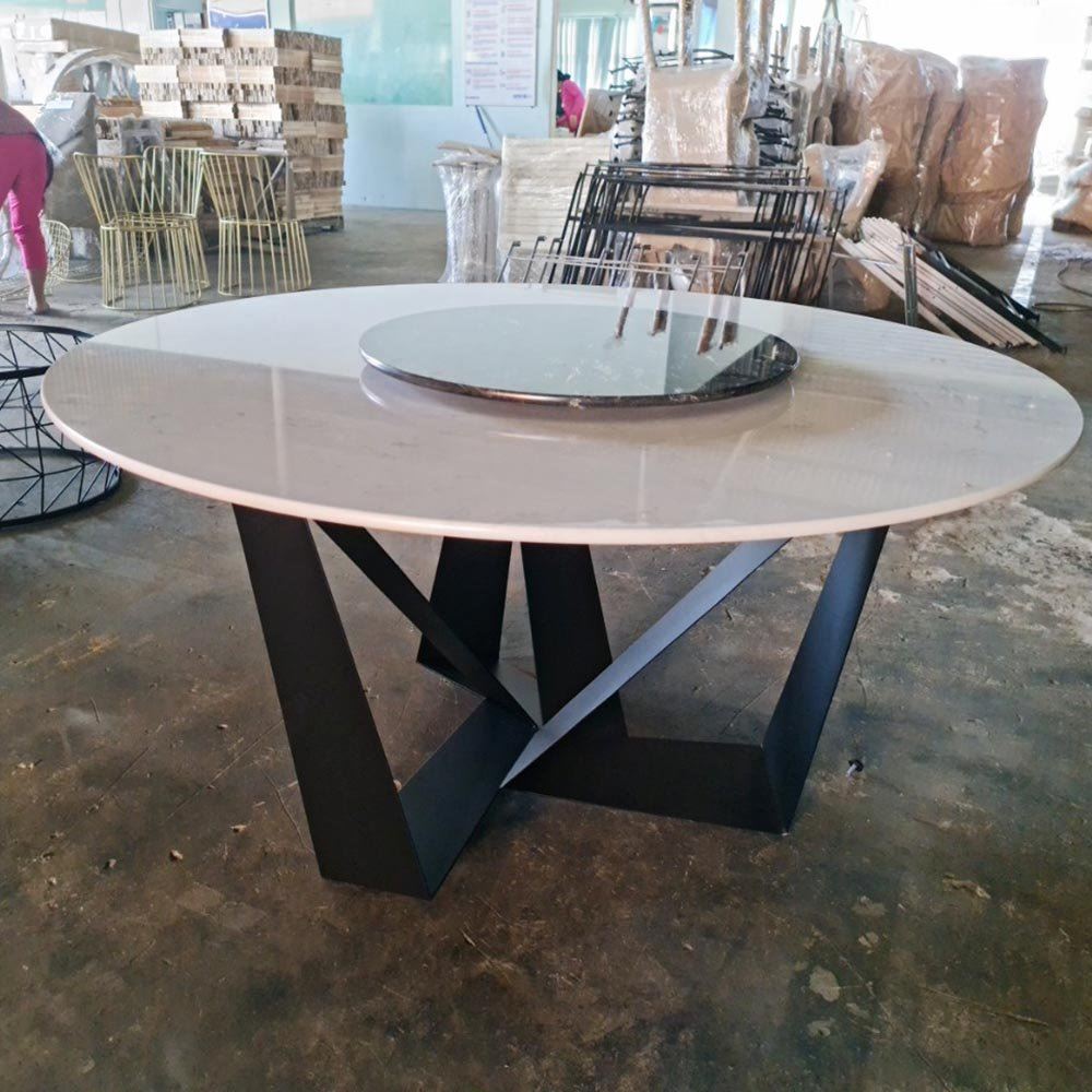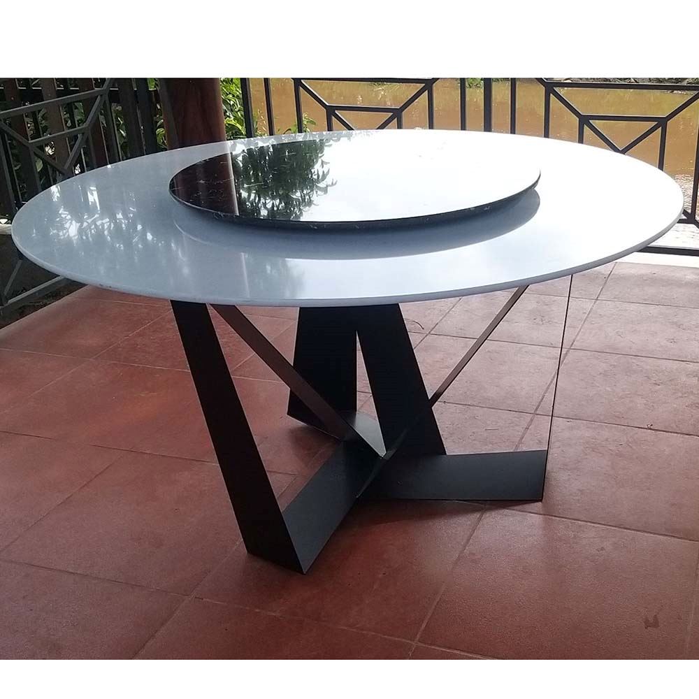 Bàn ăn xoay mặt đá trắng chân sắt sơn tĩnh điện