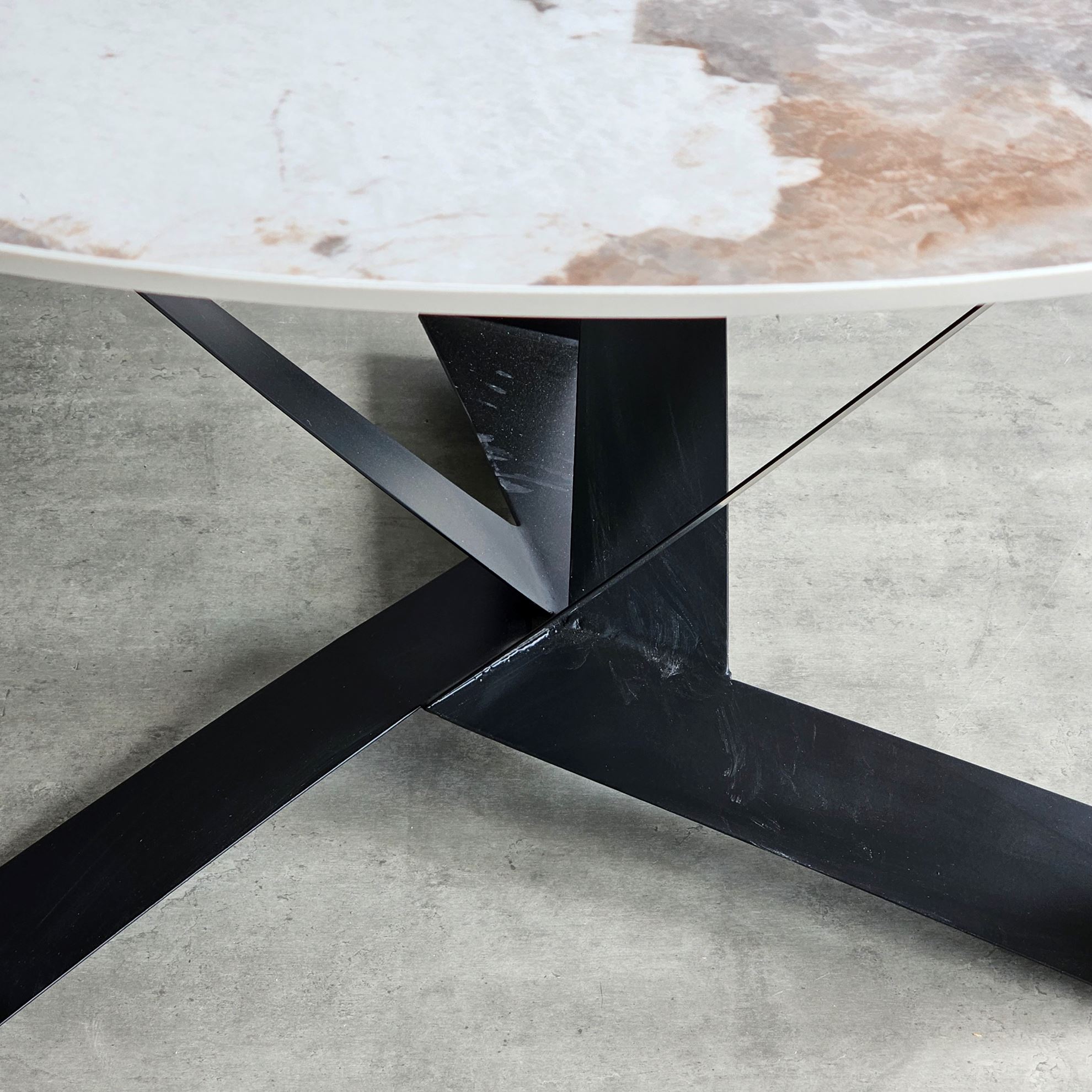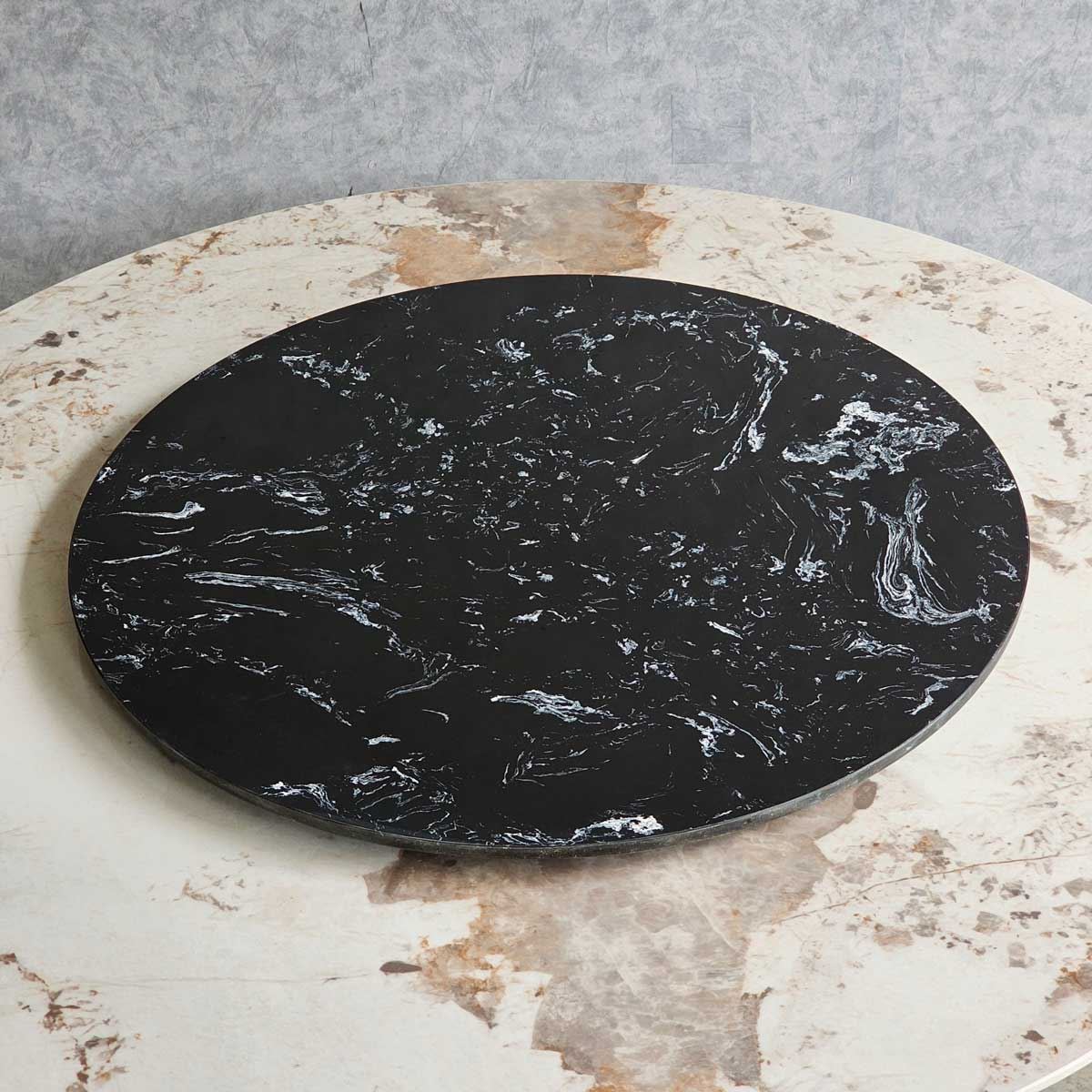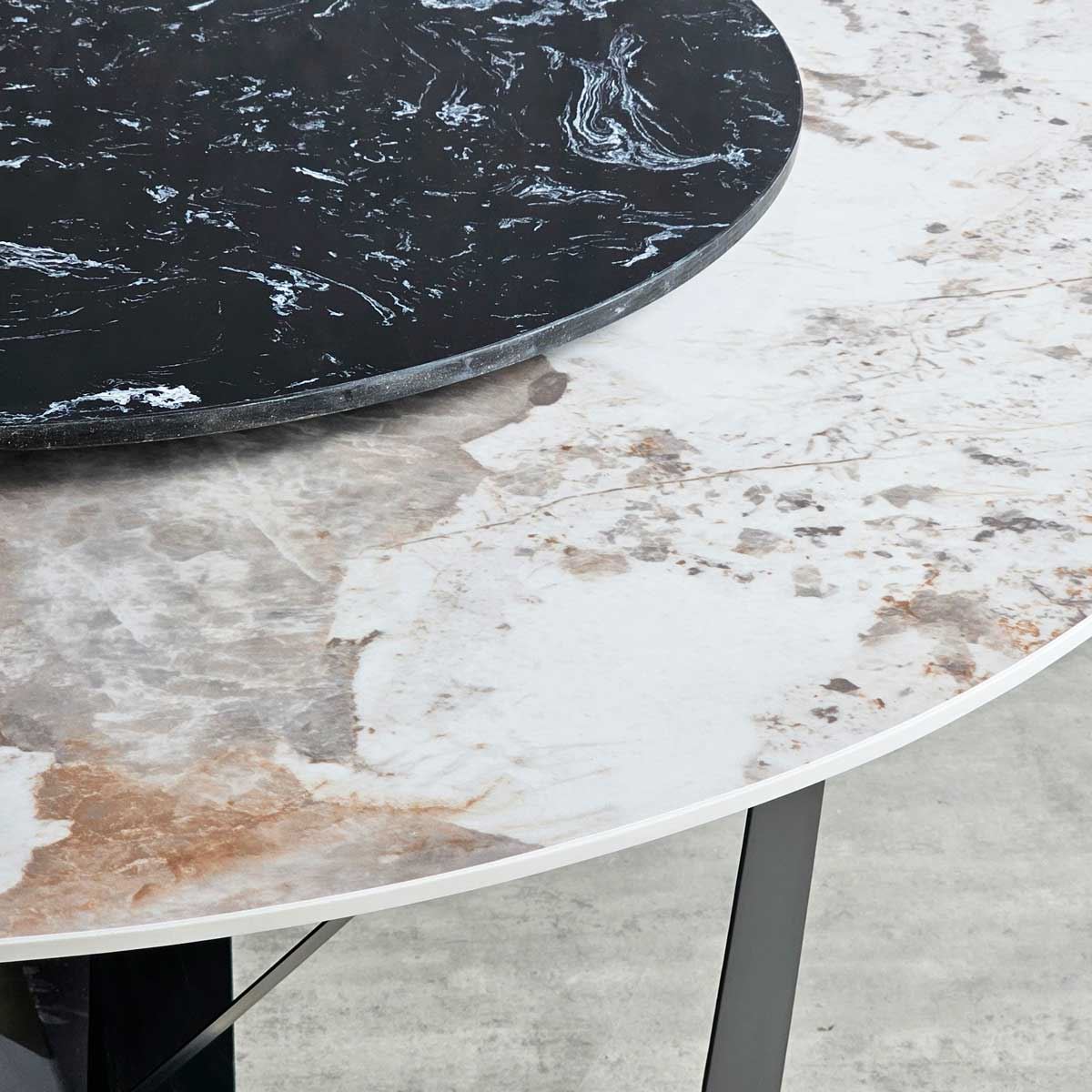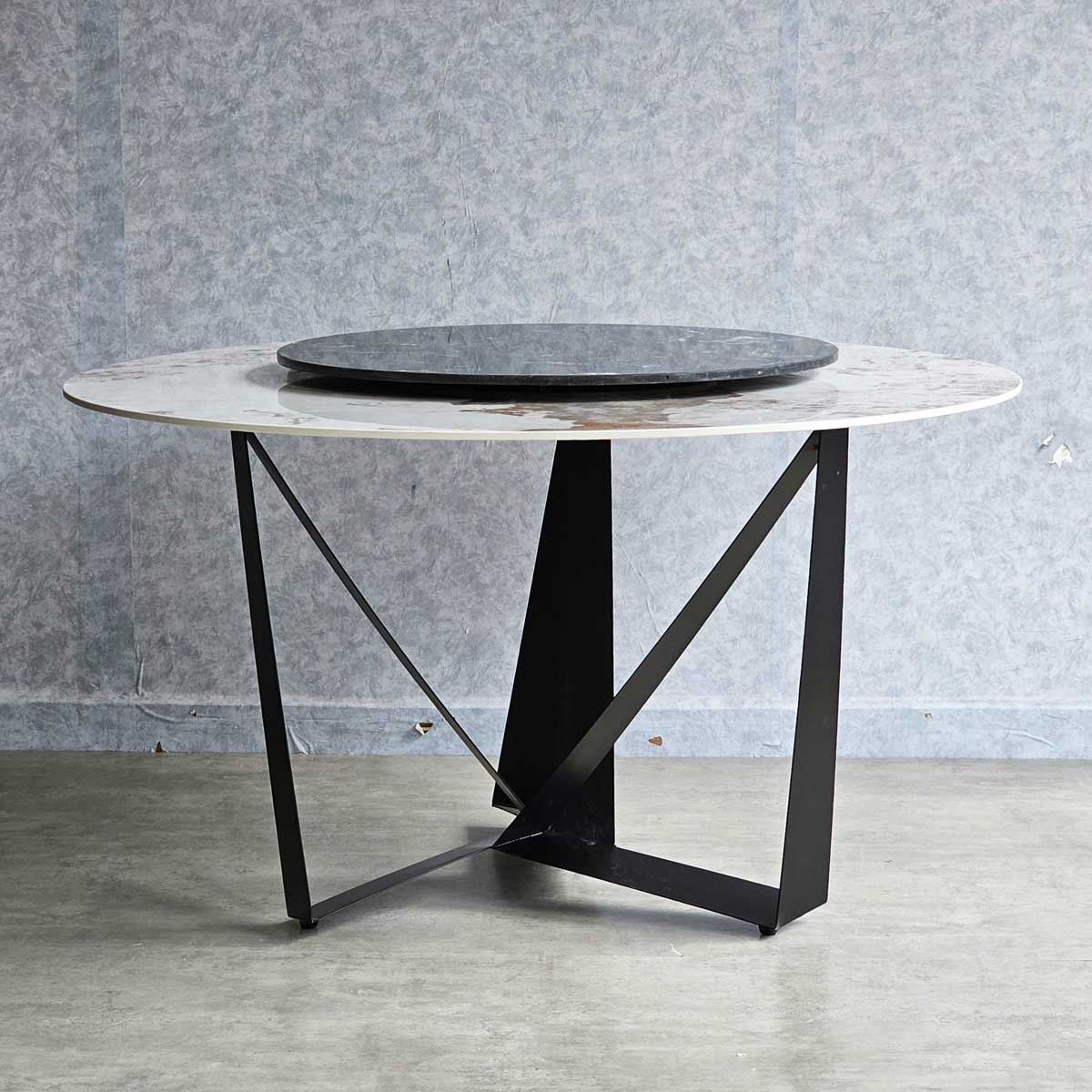Bàn ăn xoay mặt đá trắng chân sắt sơn tĩnh điện