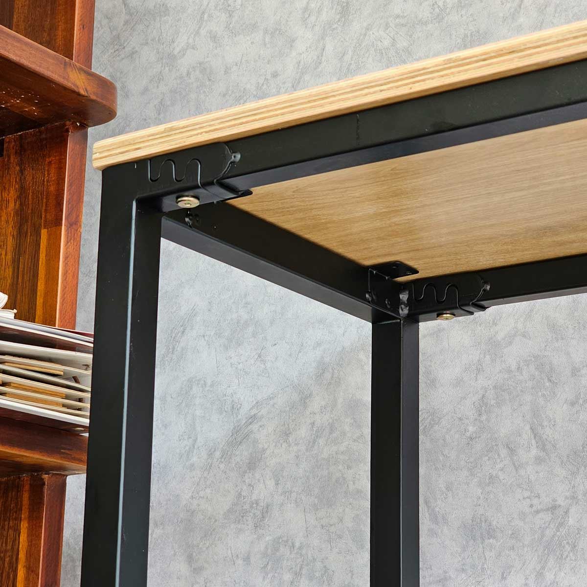 Mặt bàn gỗ plywood phủ melamine cao cấp không chỉ sang trọng mà còn có khả năng chống thấm, chống trầy xước, dễ dàng vệ sinh và bảo quản. Chân sắt hộp 30x30mm loại dày 1.2mm mang đến sự ổn định và khả năng chịu lực tốt. Bề mặt sơn tĩnh điện đảm bảo độ bền bỉ và tính thẩm mỹ cao.