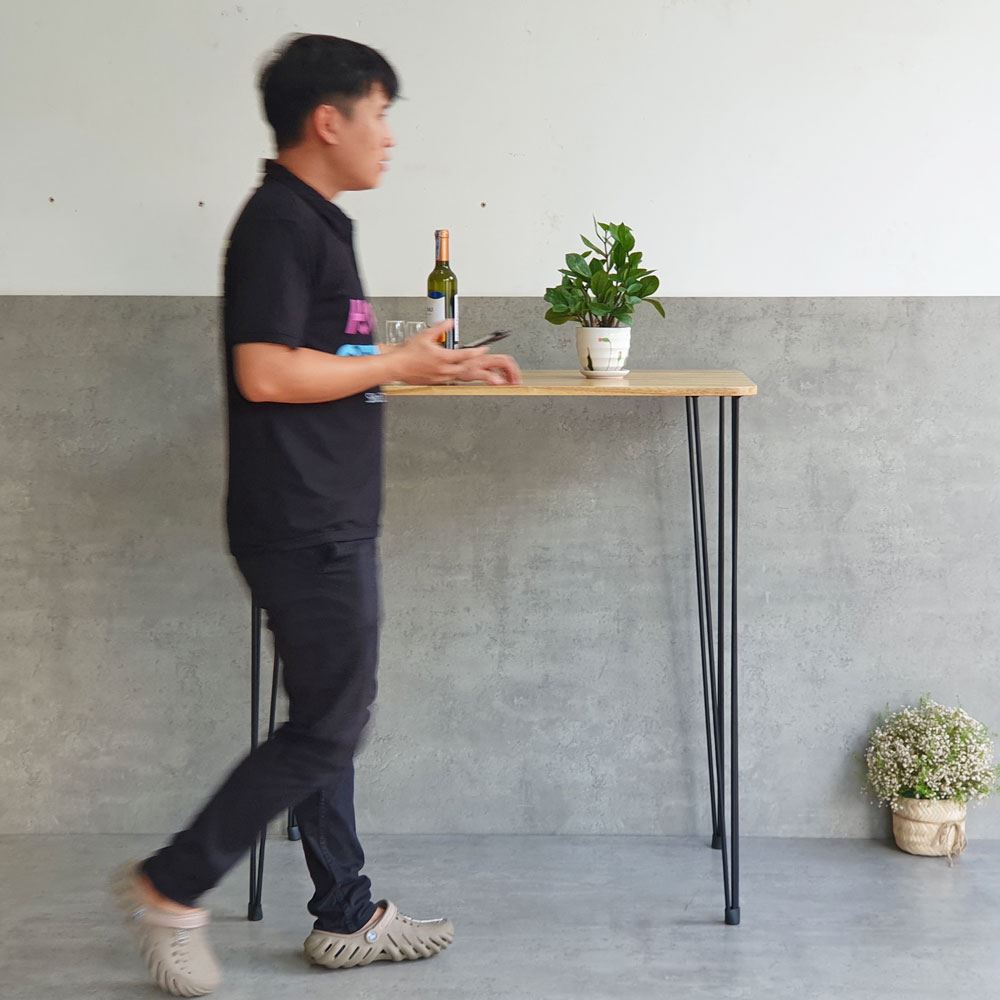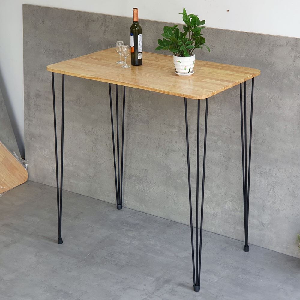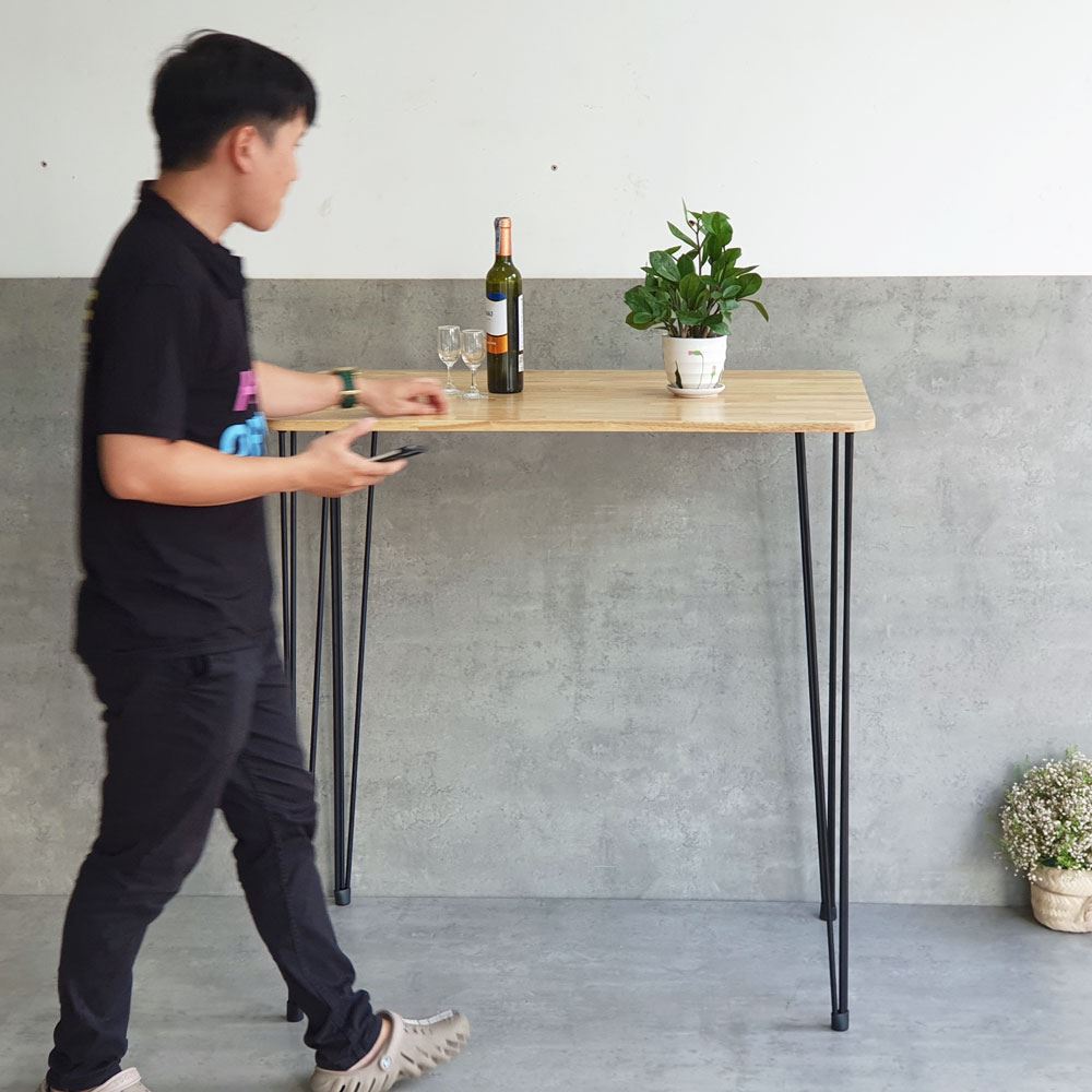 Bàn bar chữ nhật BB025 có mặt bàn được làm từ gỗ cao su AA, loại dày 17mm đã qua xử lý chống thấm nước, chống cong vênh đảm bảo độ bền. Bề mặt gỗ được sơn PU cho màu sắc đẹp mắt phù hợp với hầu hết các không gian có concept khác nhau.