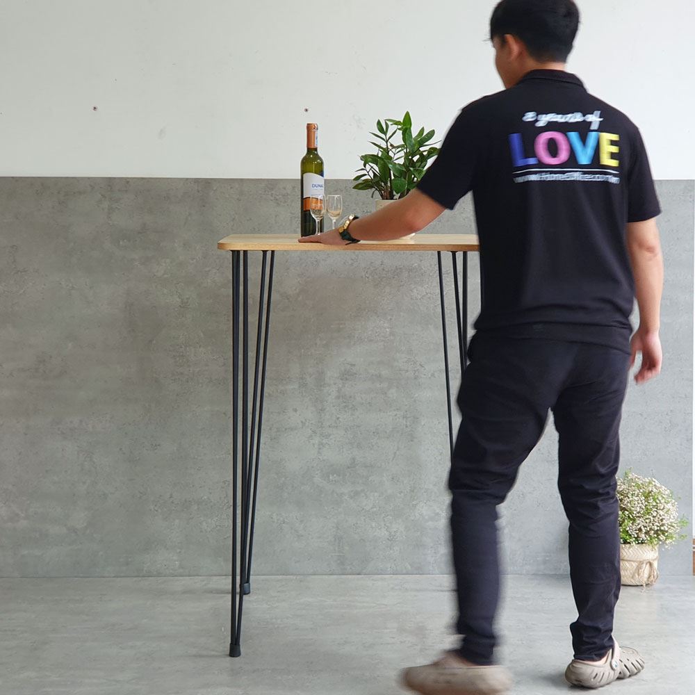 Bàn bar hình vuông BB024 có mặt bàn được làm từ gỗ cao su AA, loại dày 17mm đã qua xử lý chống thấm nước, chống cong vênh đảm bảo độ bền. Bề mặt gỗ được sơn PU cho màu sắc đẹp mắt phù hợp với hầu hết các không gian có concept khác nhau.
