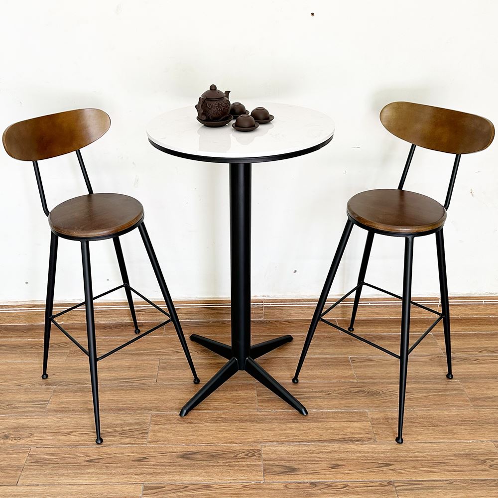Bàn bar tròn mặt đá chân sắt BB011 sở hữu kiểu dáng tối giản nhưng gia công rất tỉ mỉ với 4 chân được dập U và vuốt rất mềm mại, khung tròn đỡ mặt bàn cũng được uốn tỉ mỉ. Mặt bàn được làm từ đá độ bền cao có khả năng chịu lực tốt, hạn chế trầy xước trong quá trình sử dụng. Mặt bàn đá kết hợp cùng chân sắt kiểu dáng đơn giản, tinh tế tạo nên sản phẩm đẹp mắt dễ phối trong mọi không gian.