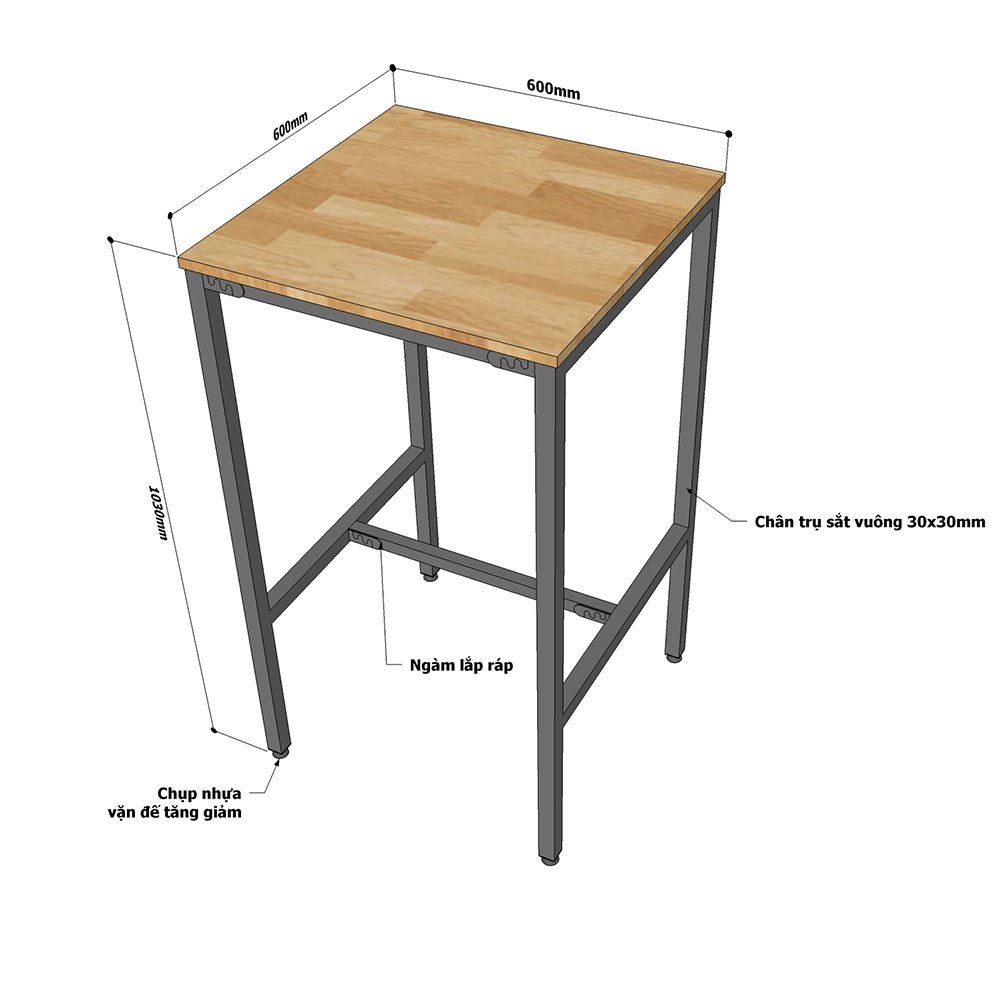 Bàn bar vuông kích thước 60cm nhỏ gọn phù hợp với không gian khiêm tốn