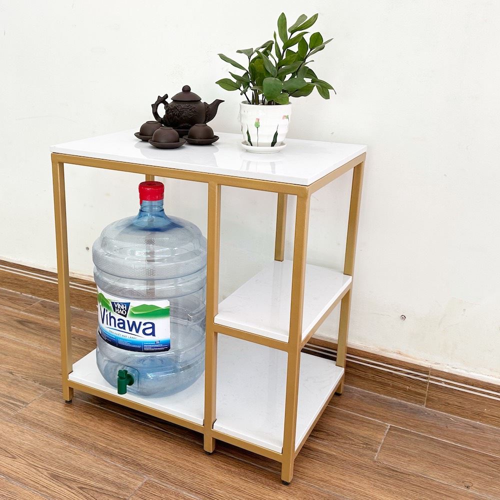 Bàn bên sofa mặt đá khung sắt SST026 thiết kế để bên Sofa rất tiện lợi, có thể để ấm trà hay sách để đọc đều rất tiện lợi, và cũng có thể coi như là một chiếc kệ, bàn trang trí trong khu vực phòng khách. Khung sắt hộp vuông sơn nhiều màu, kết hợp với đá vân mây trắng hoặc đen khách hàng có thể lựa chọn.