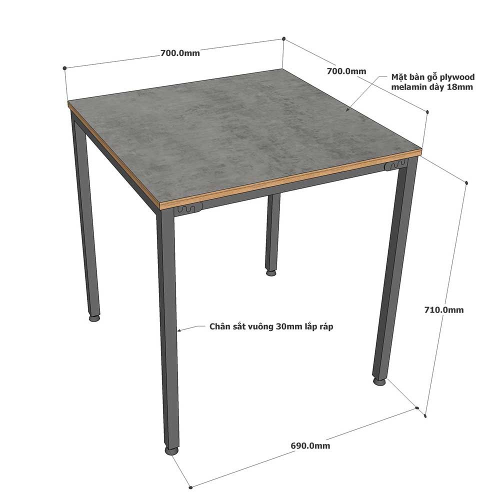 Bàn cafe, bàn ăn vuông gỗ Plywood chân sắt BA68087 với mặt bàn gỗ Plywood có cốt là gỗ tự nhiên nên sở hữu các tính năng ưu việt có độ bền cao, cứng cáp và được xử lý chống thấm nước giúp bạn yên tâm trong quá trình sử dụng. Chân bàn với cơ cấu lắp ráp giúp bạn thuận tiện trong việc tháo lắp, di chuyển. Kiểu dáng hiện đại, cơ bản bàn BA68087 thêm tính linh hoạt, phù hợp với nhiều phong cách khác nhau từ bàn ăn cho phòng bếp vừa và nhỏ hay có thể là bàn cafe, bàn quán ăn nhà hàng đều được.