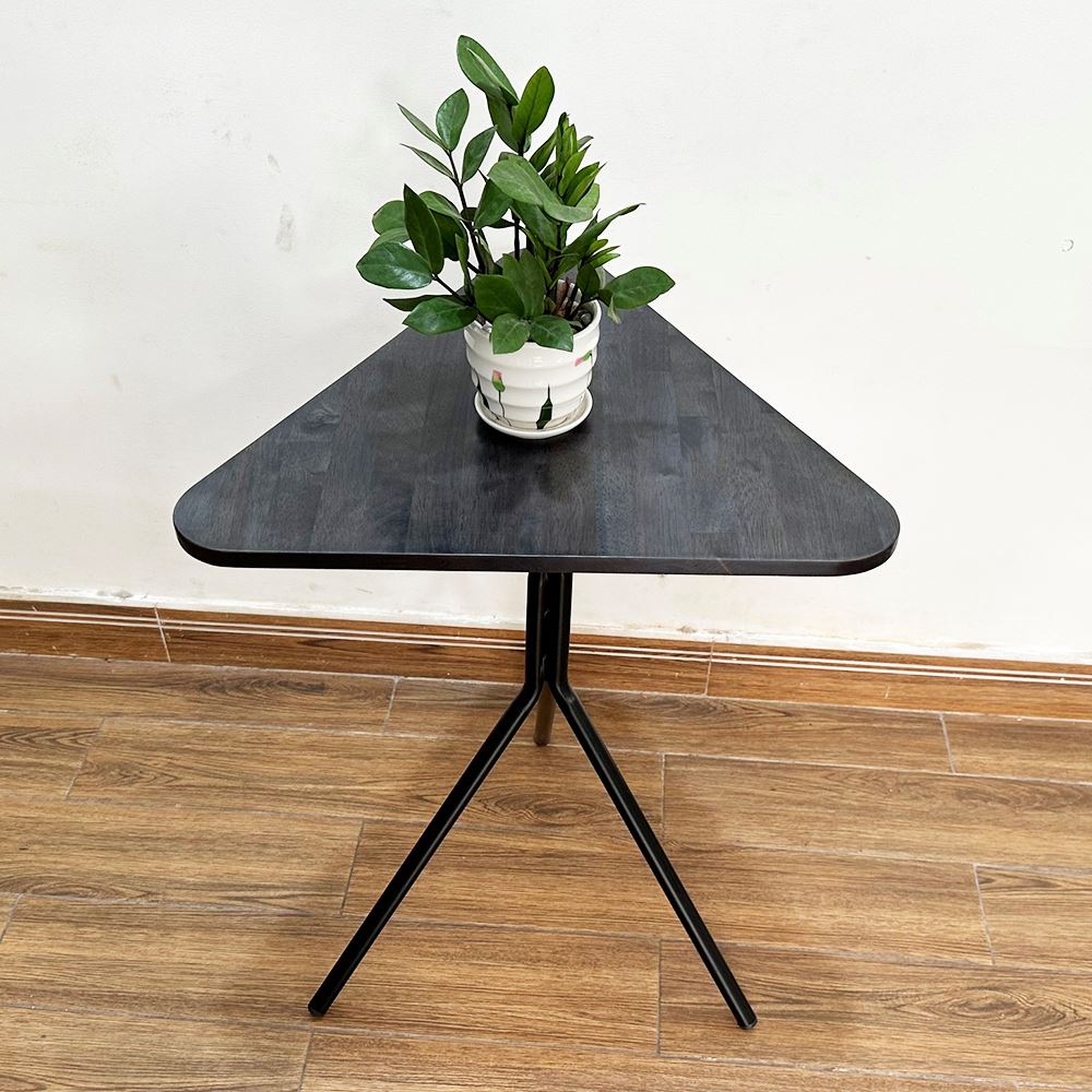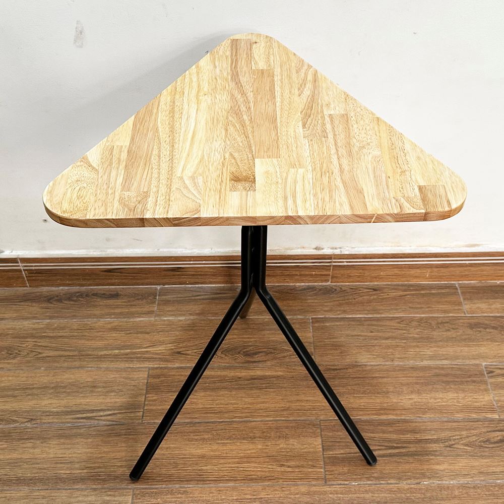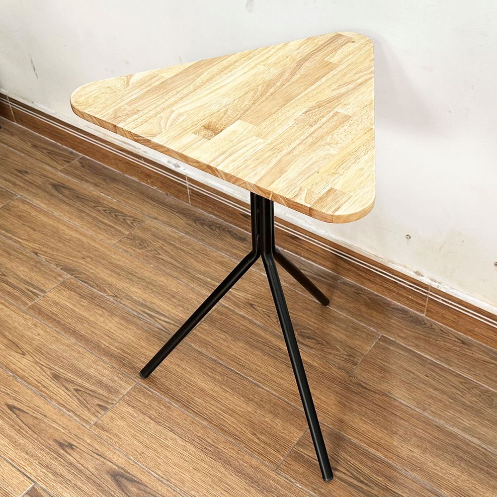 Bàn cafe gỗ cao su chân sắt chãng 3 CFD68138 kiểu chân bàn hết sức đơn giản nhưng lại rất chắc chắn như Kiềng 3 Chân với sắt tròn phi dày sơn tĩnh điện đen hoặc trắng kết hợp với mặt bàn hình tam giác bo cạnh, gỗ cao su tiêu chuẩn AA sơn PU hoàn thiện với 5 màu sắc lựa chọn, mẫu bàn cafe đơn giản giá rẻ CFD68138 là sự lựa chọn tối ưu cho các không gian quán nhỏ cần sự thông thoáng trong thiết kế.