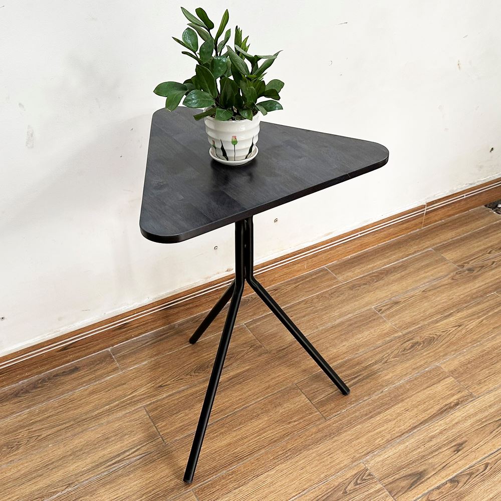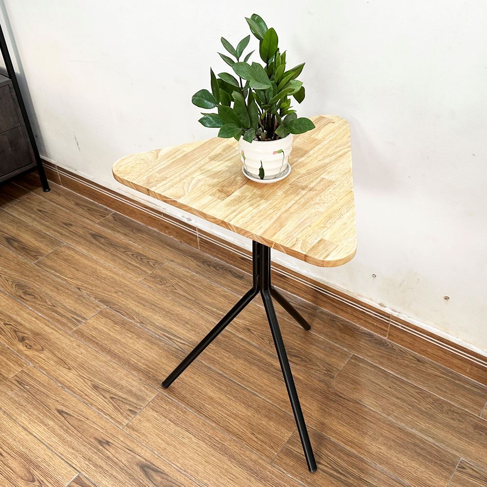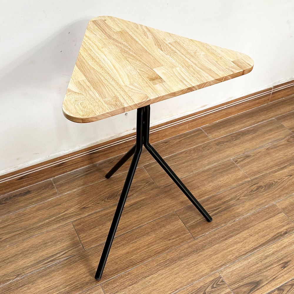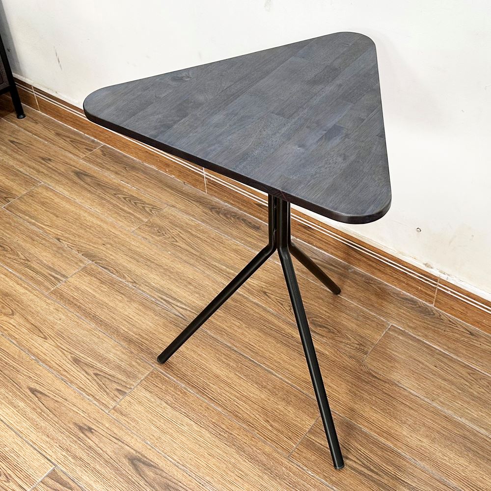 Bàn cafe gỗ cao su chân sắt chãng 3 CFD68138 kiểu chân bàn hết sức đơn giản nhưng lại rất chắc chắn như Kiềng 3 Chân với sắt tròn phi dày sơn tĩnh điện đen hoặc trắng kết hợp với mặt bàn hình tam giác bo cạnh, gỗ cao su tiêu chuẩn AA sơn PU hoàn thiện với 5 màu sắc lựa chọn, mẫu bàn cafe đơn giản giá rẻ CFD68138 là sự lựa chọn tối ưu cho các không gian quán nhỏ cần sự thông thoáng trong thiết kế.
