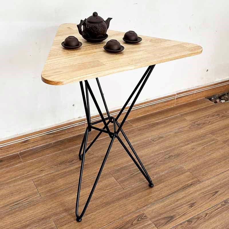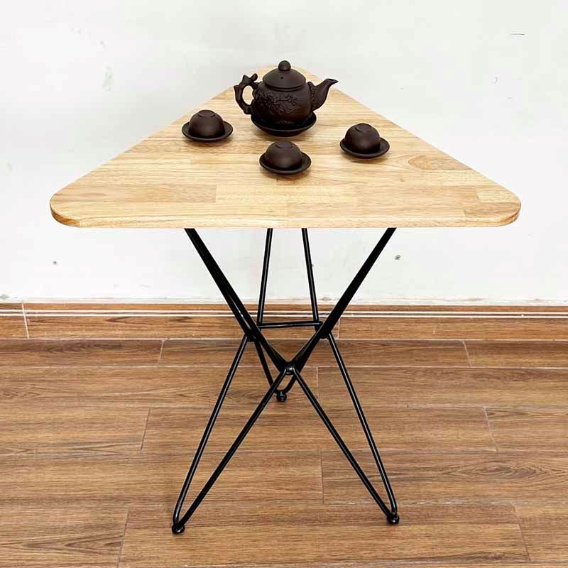 Bàn cafe gỗ cao su chân sắt ziczac CFD68140 với thiết kế đơn giản nhưng hiện đại với kiểu chân sắt tròn đặc 10mm kiểu dáng 3 chân trụ thắt giữa kiểu chân Hairpin sơn tĩnh điện với mặt bàn hình tam giác bo cạnh, gỗ cao su ghép dày 17mm tiêu chuẩn AA sơn pU hoàn thiện với 5 màu sắc lựa chọn đẹp mắt.
