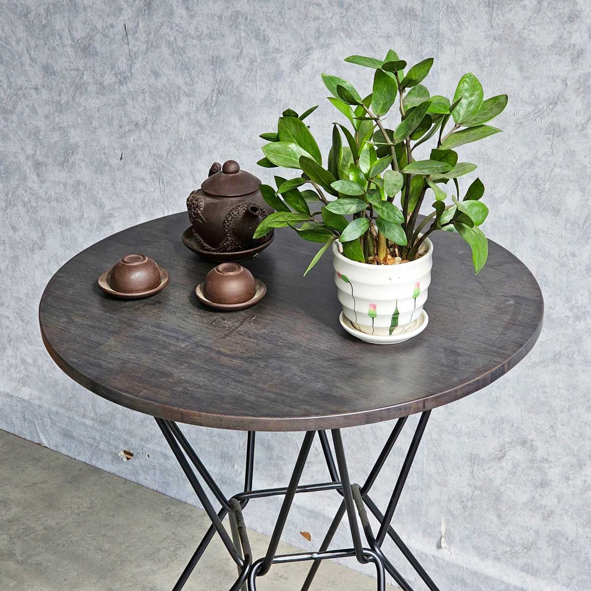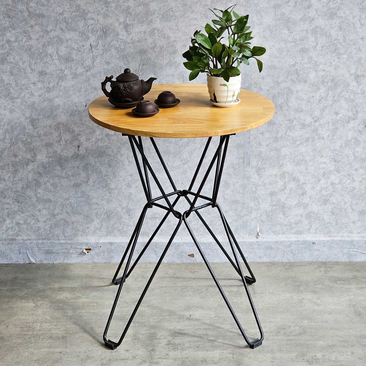 Bàn cafe tròn 60cm chân sắt gỗ cao su CFD68216