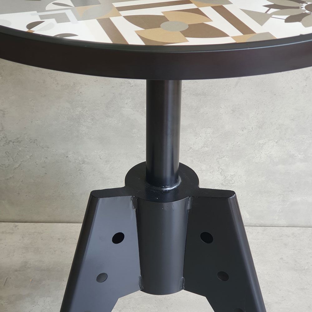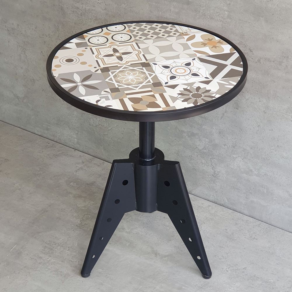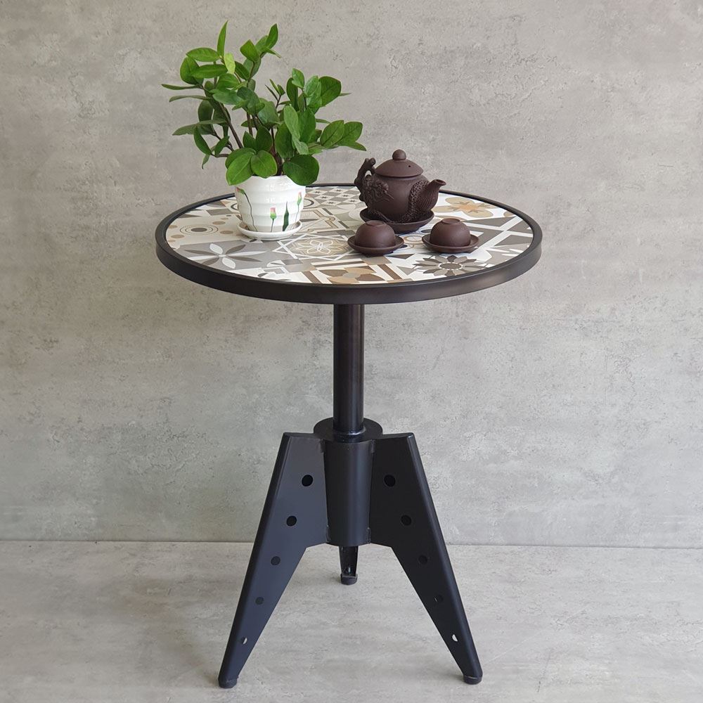 Bàn tròn CFD68192 với khung chân sắt trụ tròn thanh mảnh, tinh tế nhưng vẫn đảm bảo độ chắc chắn cần có, kết hợp với khung chân sắt là mặt bàn gạch men nhiều màu hoạ tiết (mặt hoa văn hay mặt gạch trắng hạt lựu) đẹp mắt. Bàn cafe tròn CFD68192 có thể sử dụng là bàn decor, bàn tiếp khách, bàn sân vườn tại nhà hay bàn ghế quán cafe, nhà hàng,...