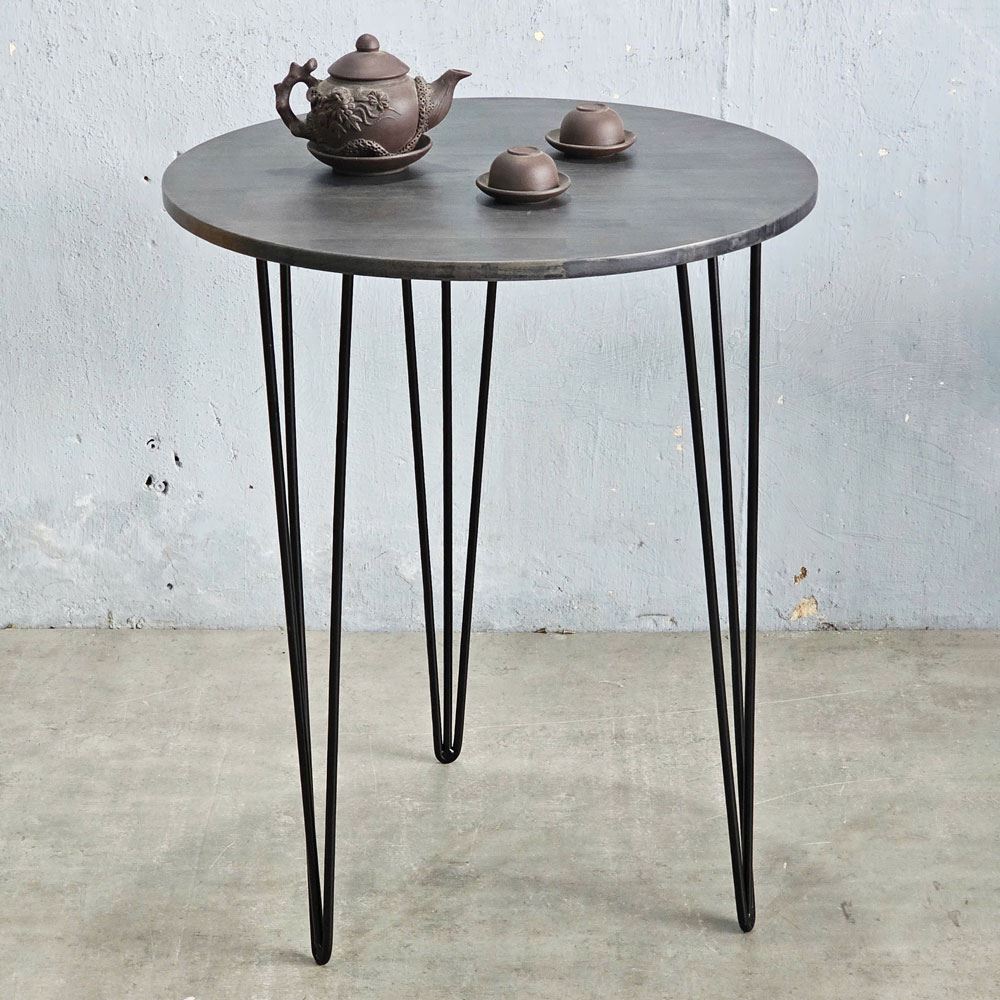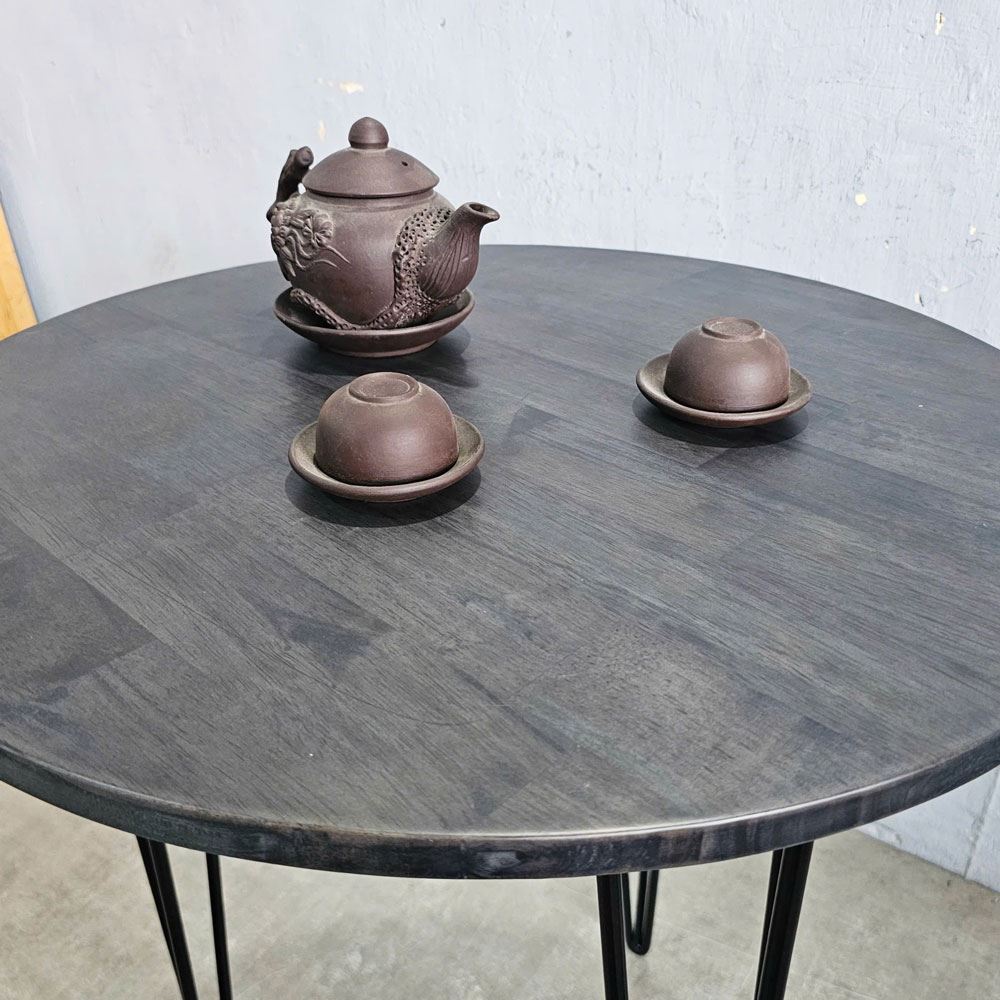 Bàn cafe tròn 60x60cm gỗ cao su chân Hairpin CFD68263
