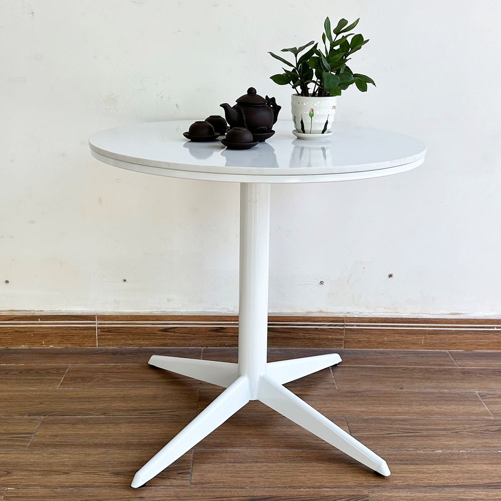 Bàn cafe tròn mặt đá trắng kết hợp chân sắt đen sơn tĩnh điện chắc chắn