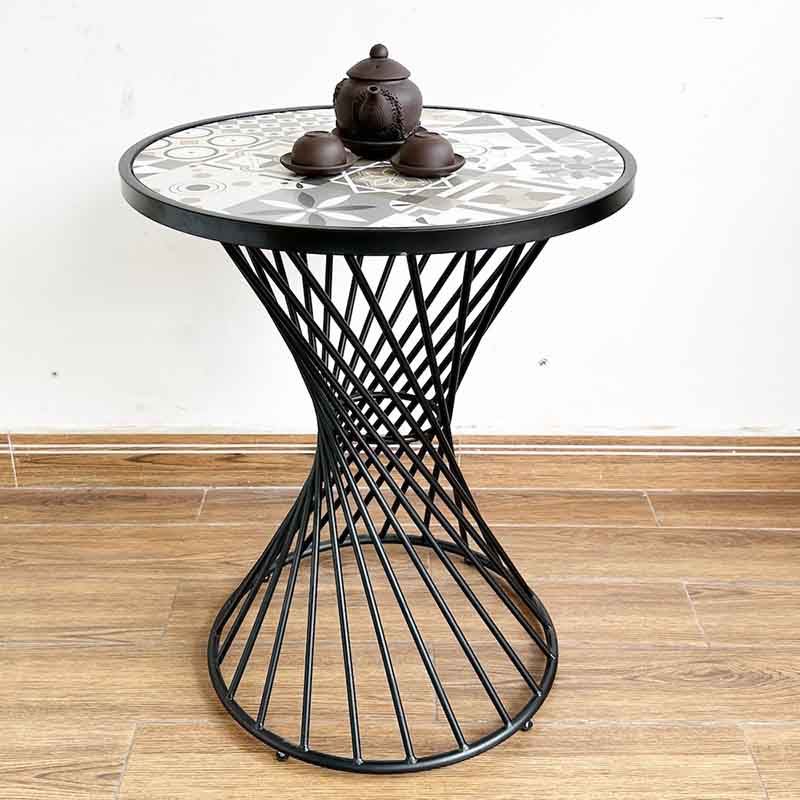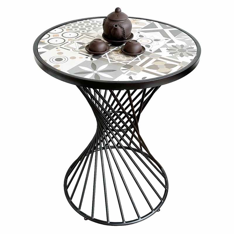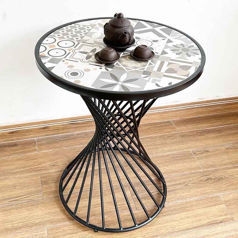 Bàn cafe tròn mặt gạch men chân sắt CFD68148 với mặt bàn gạch men với thiết kế nhiều họa tiết thú vị, bên cạnh đó mặt bàn dễ lau sạch sẽ khi mặt bàn dính nước. Kết hợp với mặt bàn hoa văn là chân sắt được thiết kế với phần chân bàn là các thanh sắt tròn đan xen theo hình tròn uốn lượn độc đáo. Với thiết kế đơn giản, gọn nhẹ chiếc bàn này có thể để được ở bất kỳ vị trí nào từ những quán cà phê có không gian nhỏ, hẹp đến góc tường, ban công hay cạnh cửa sổ nhà bạn.