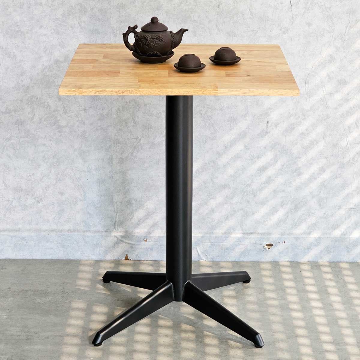 Bàn cafe CFD68214 là sự kết hợp hài hòa giữa chất liệu gỗ cao su AA và chân sắt sơn tĩnh điện chắc chắn. Mặt bàn được làm từ gỗ cao su AA loại dày 17mm, đạt tiêu chuẩn xuất khẩu, với vân gỗ rất đều, không mấu mắt, có tính thẩm mỹ, đã được xử lý hoàn thiện giúp cho bề mặt sản phẩm láng bóng, chống nước tuyệt đối. Chân sắt được gia công chắc chắn, sử dụng loại sắt dày dặn, có tính ổn định cao, bề mặt phủ sơn tĩnh điện chống gỉ giúp mang tính thẩm mỹ cao và chống gỉ sét.