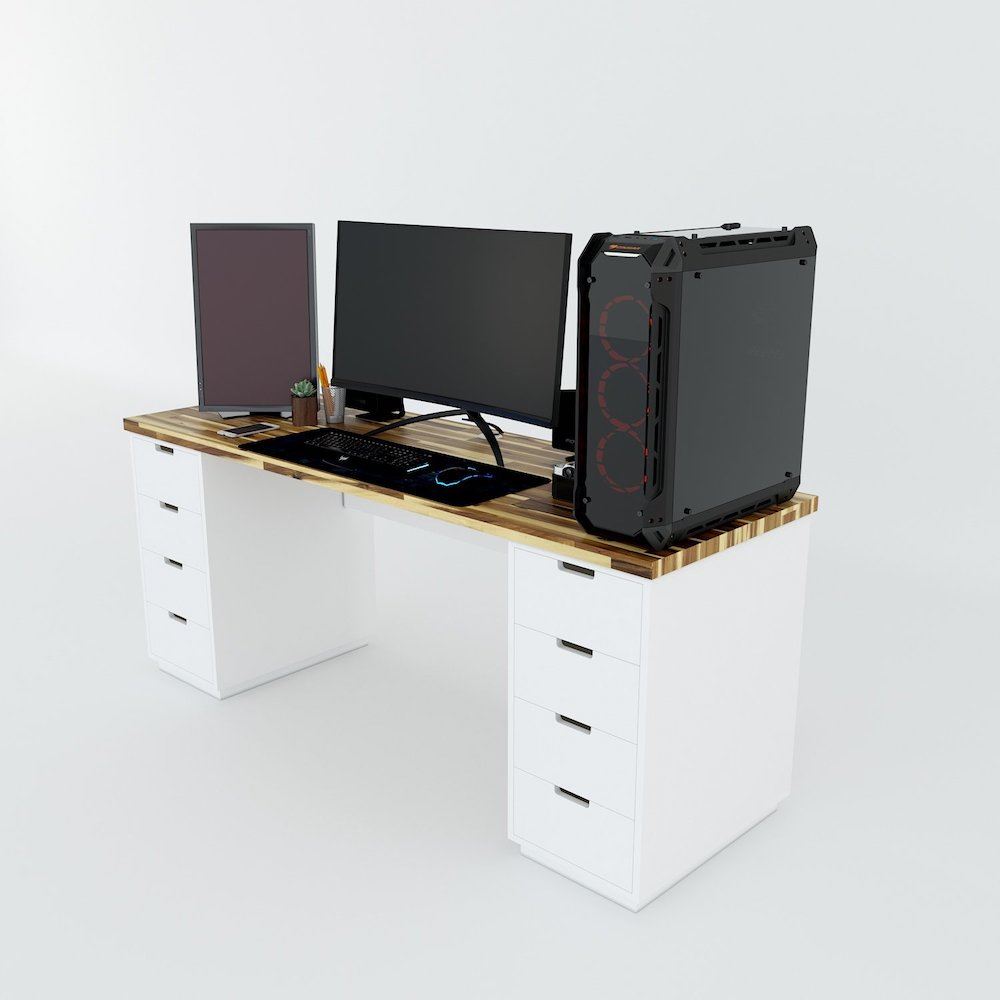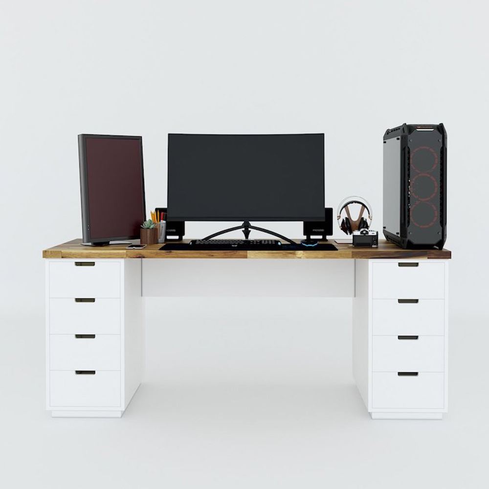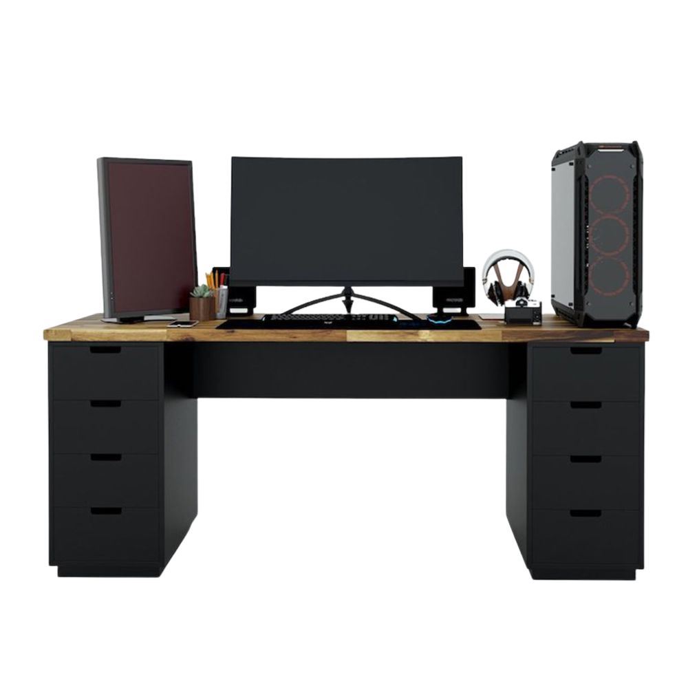 Bàn chơi Game GD68028 thiết kế tối giản với hai chân tủ mỗi tủ với 4 hộc kéo giúp tăng khả năng lưu trữ lên tối đa, mặt bàn kích thước lớn 180x60cm giúp để hai hay 3 màn hình đều rất thoải mái chỗ để chân vừa đủ rộng cho Ghế Game giúp Game thủ ngồi thoải mái.