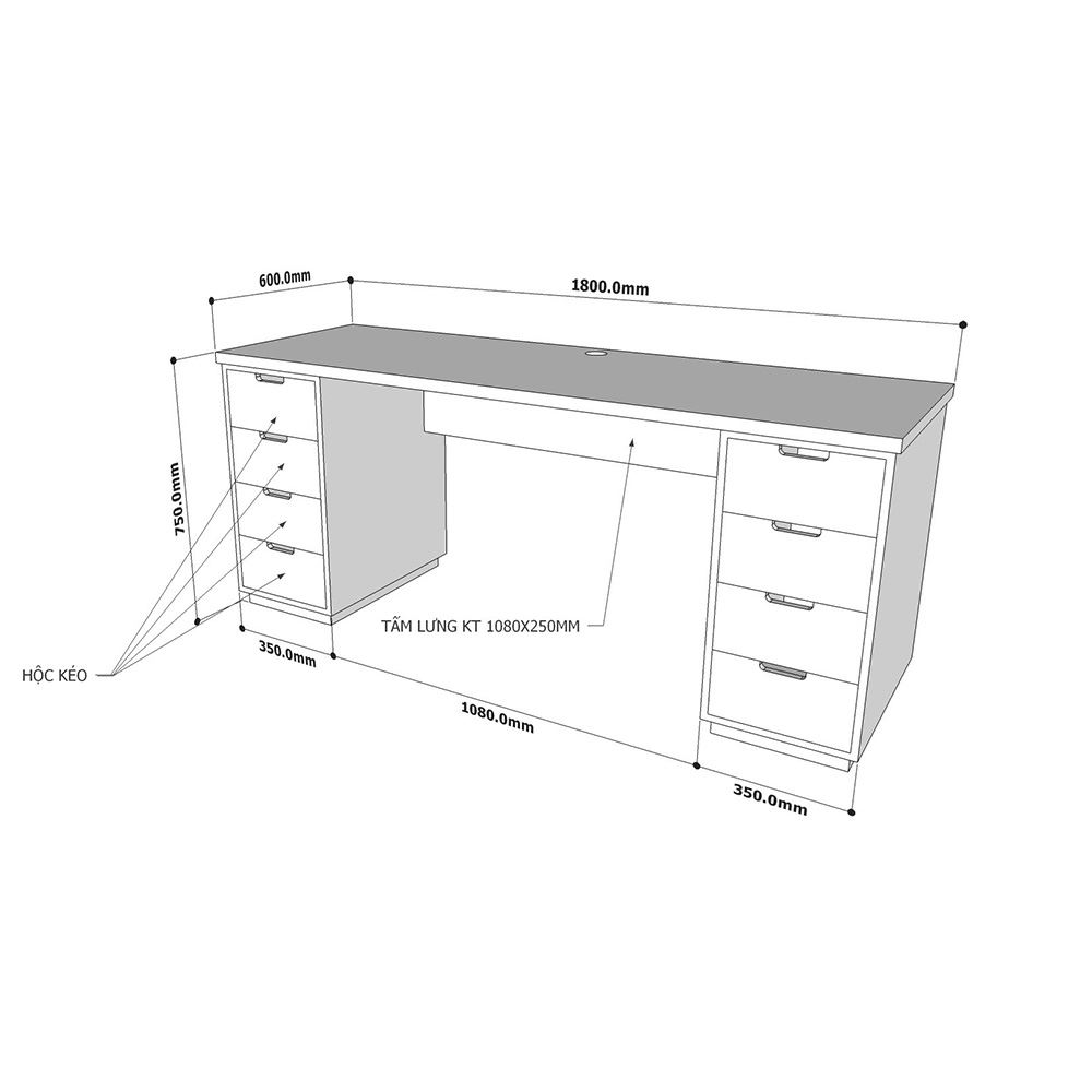 Chân tủ mỗi bên gồm 4 ngăn kéo tăng khả năng lưu trữ tối đa
