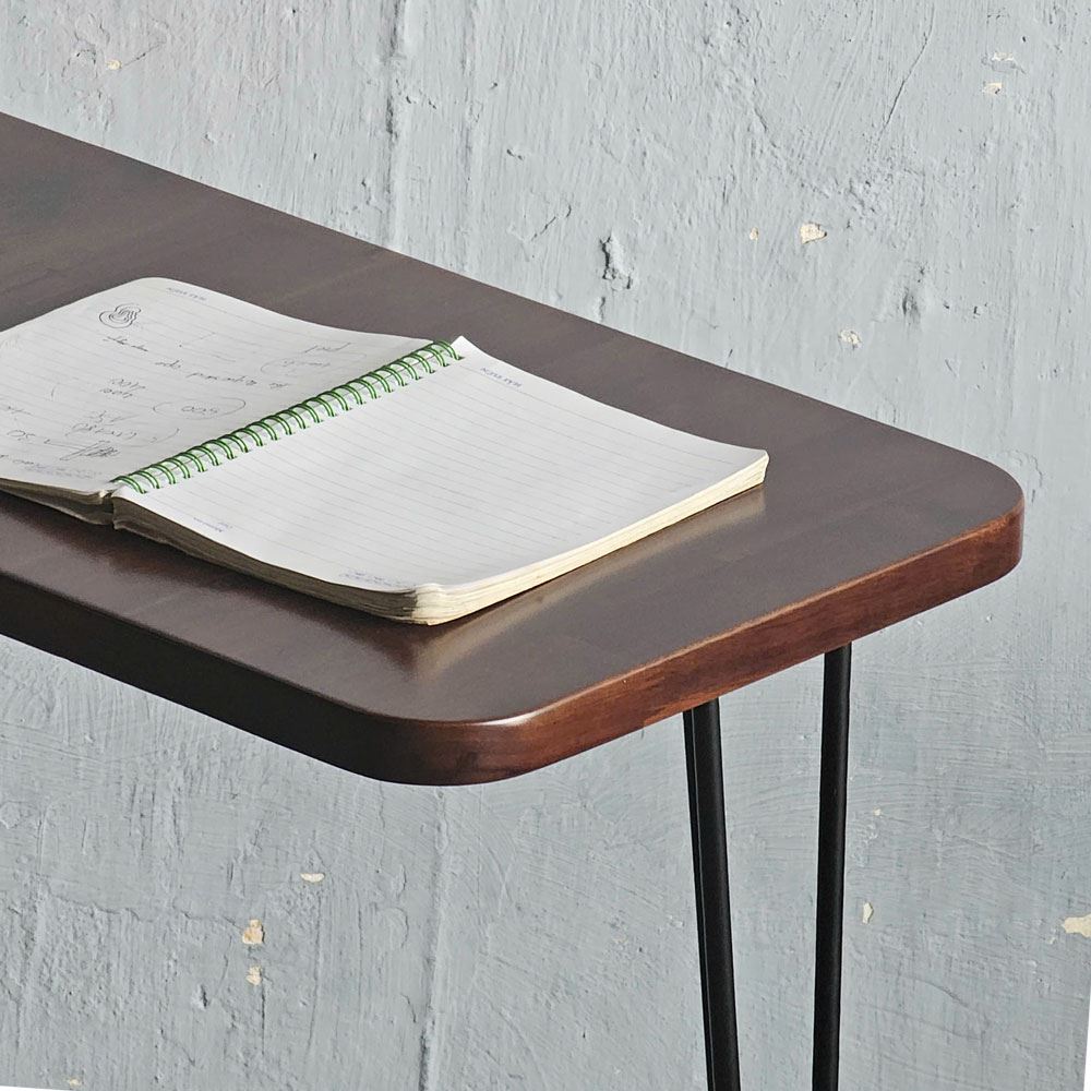 Sự kết hợp giữa mặt bàn gỗ tràm ấm áp và chân bàn hairpin hiện đại tạo nên một tổng thể hài hòa, mang đến vẻ đẹp độc đáo và thời thượng