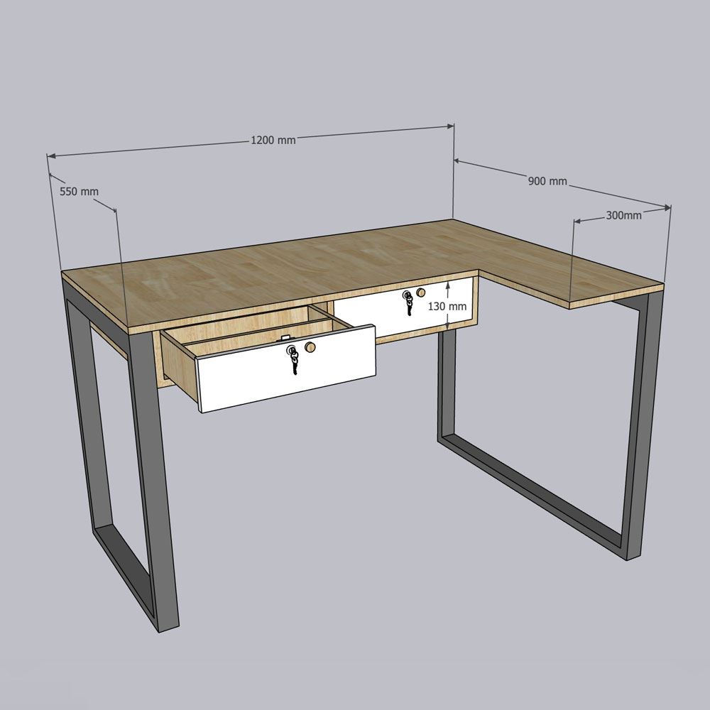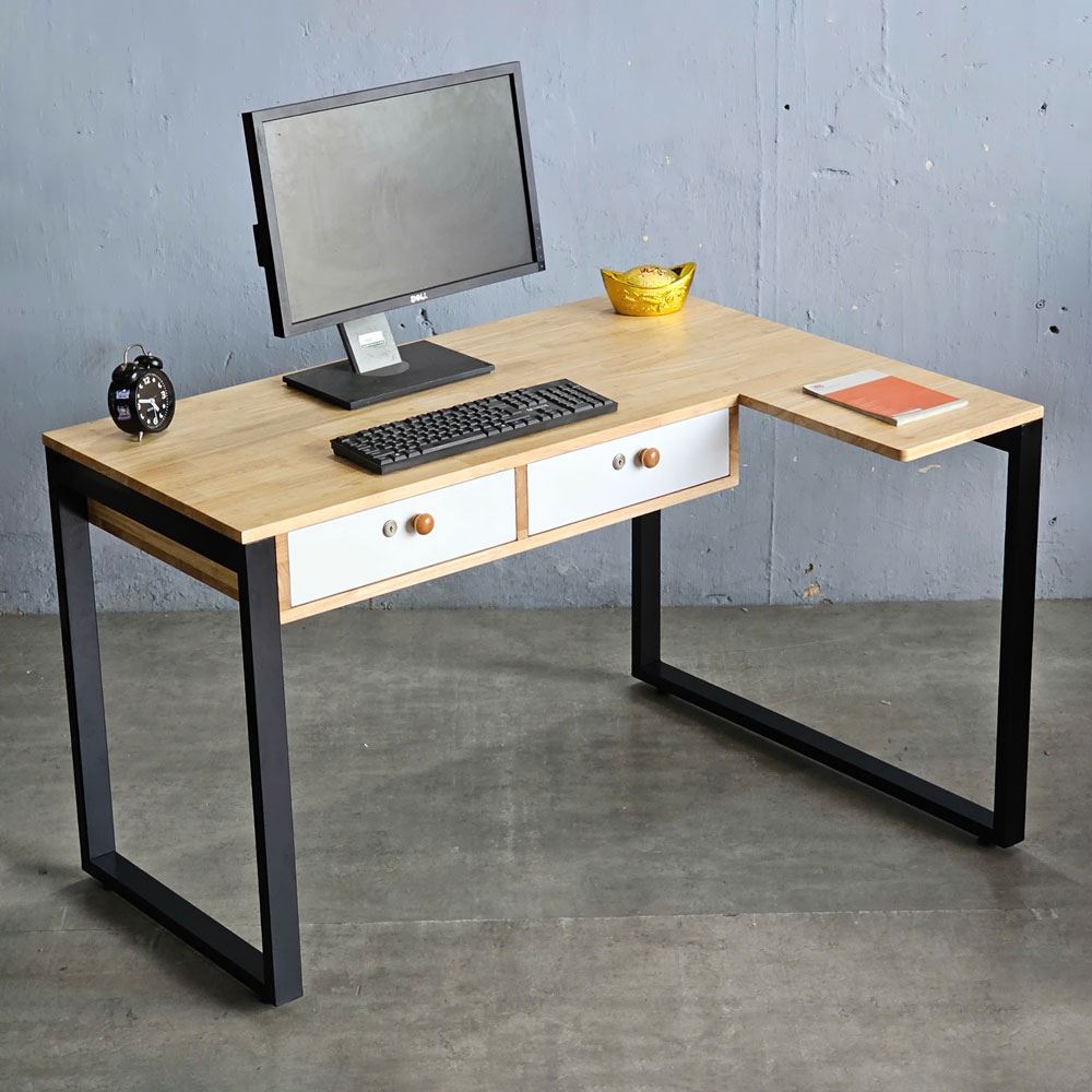 Bàn chữ L có ngăn kéo 120x90cm gỗ cao su CD68037