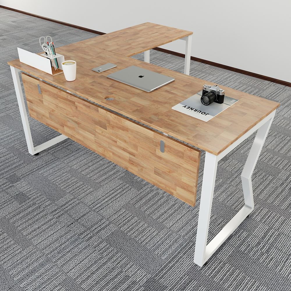 Bàn Làm Việc Chữ L HBMC018 MConcept chân sắt chữ nhật 25x50. Bàn văn phòng gỗ cao su ghép tiêu chuẩn AA dày 17mm PU màu gỗ tự nhiên luôn có một vẻ đẹp riêng, thân thiện với môi trường, đối với các văn phòng mở, văn phòng kết hợp với cây xanh thì việc sử dụng bàn gỗ cao su chân sắt kết hợp trở nên hoàn hảo. Chất liệu gỗ cao su tại HomeOffice là gỗ ghép dày 17mm tiêu chuẩn AA ( 2 mặt đẹp) được xử lý qua 4 công đoạn trước khi PU hoàn thiện cho bề mặt sản phẩm rất đẹp mắt, chống nước tuyệt đối. Khung chân sắt sơn tĩnh điện với cơ cấu ngàm lắp ráp dễ dàng.
