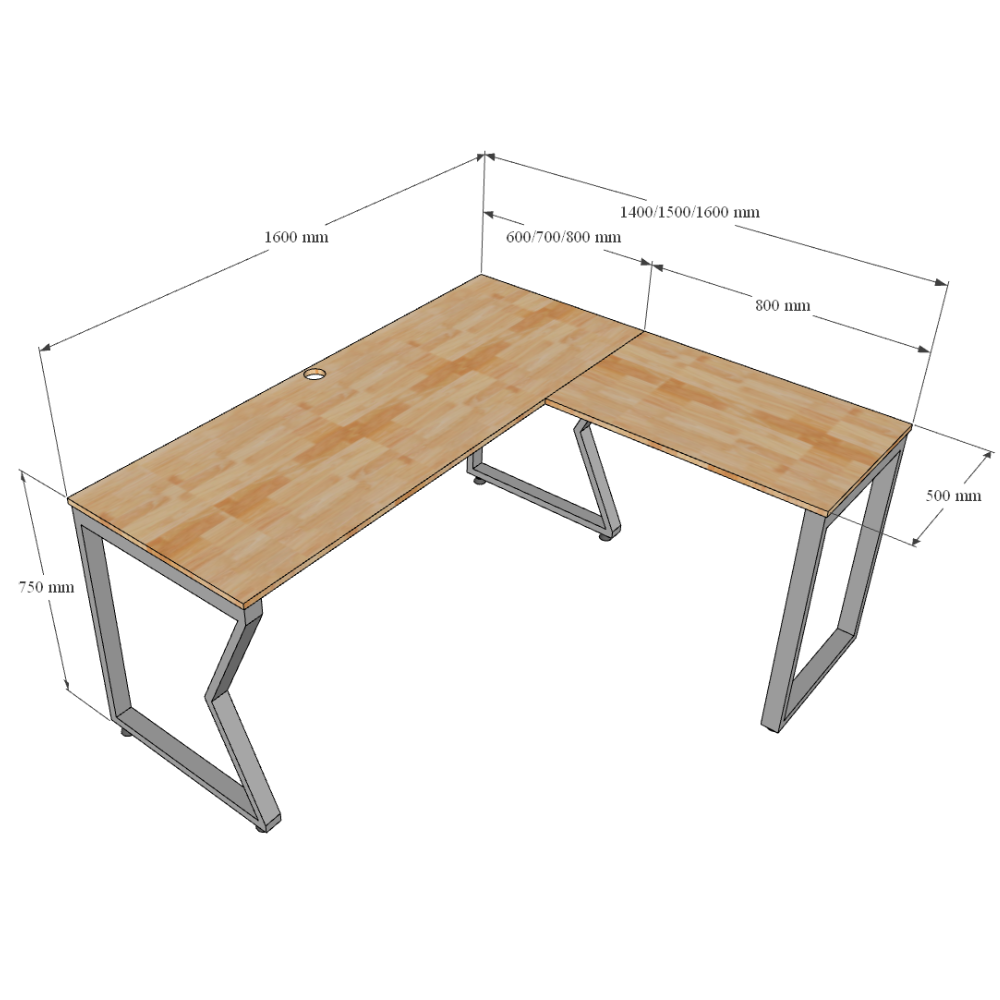 Kích thước chi tiết bàn làm việc góc L 160x140cm